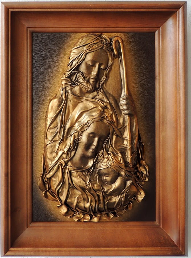 PIĘKNY OBRAZ ZE SKÓRY Z DUŻĄ PŁASKORZEŹBĄ ŚWIĘTEJ RODZINY - SR5-2