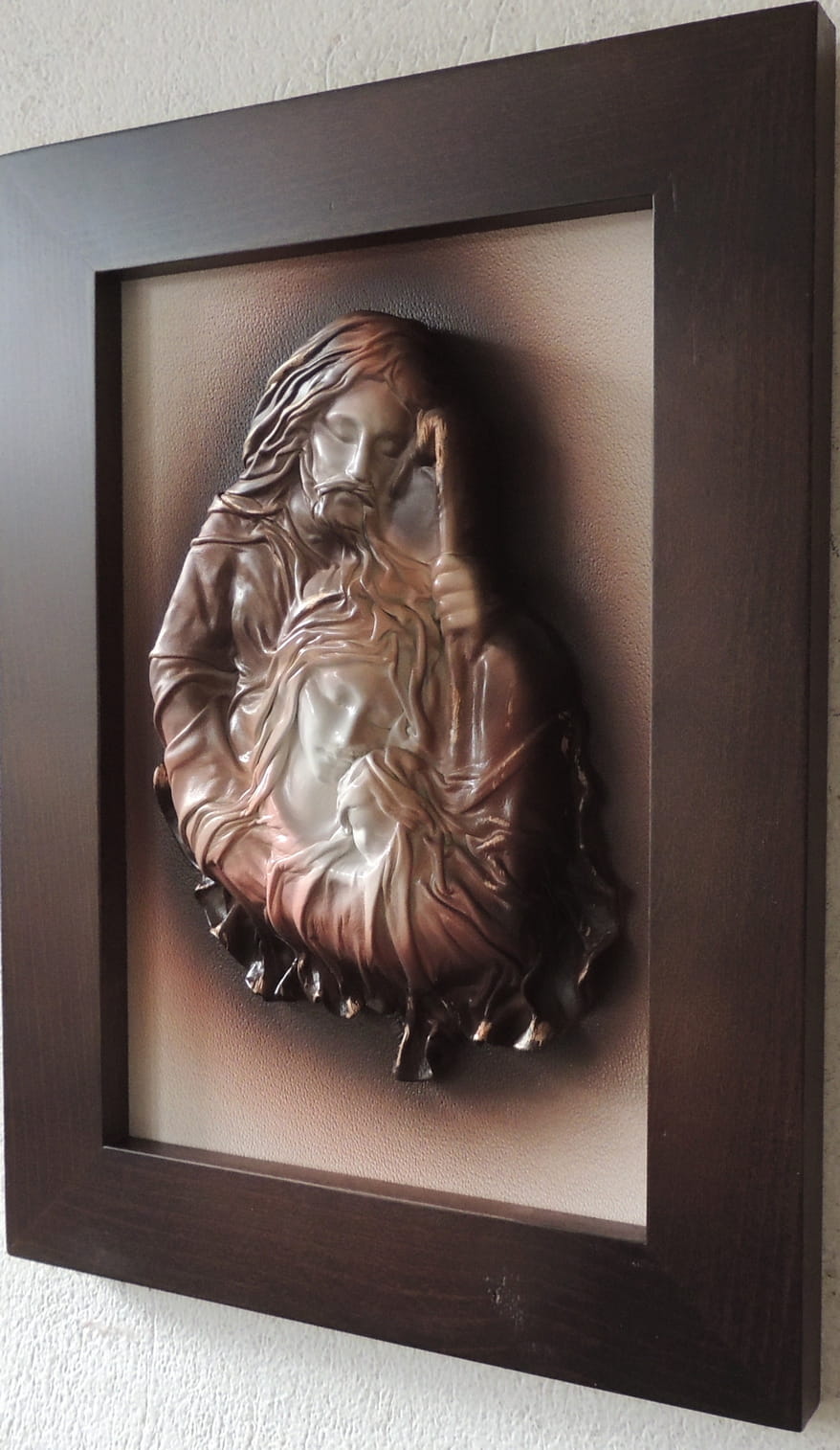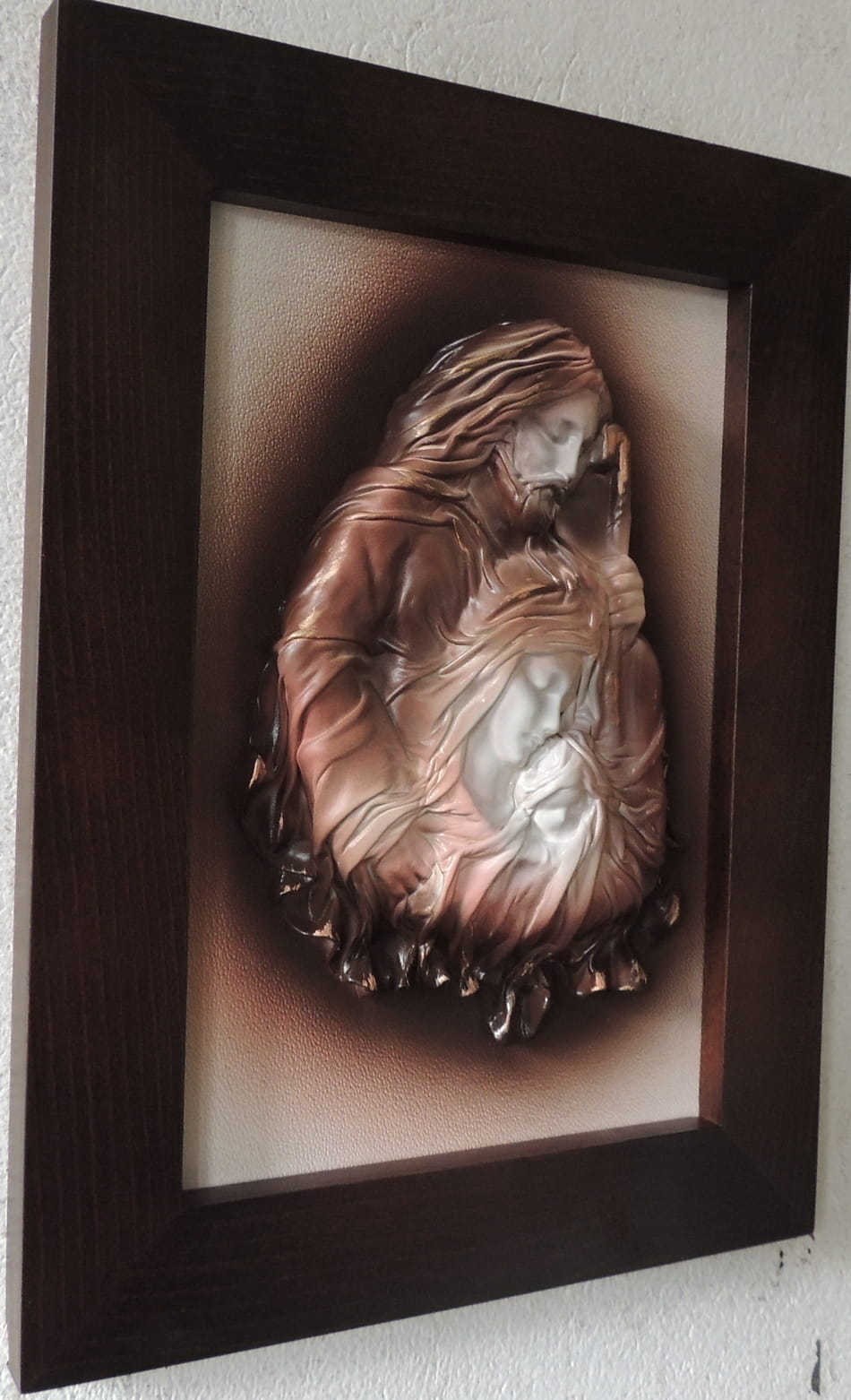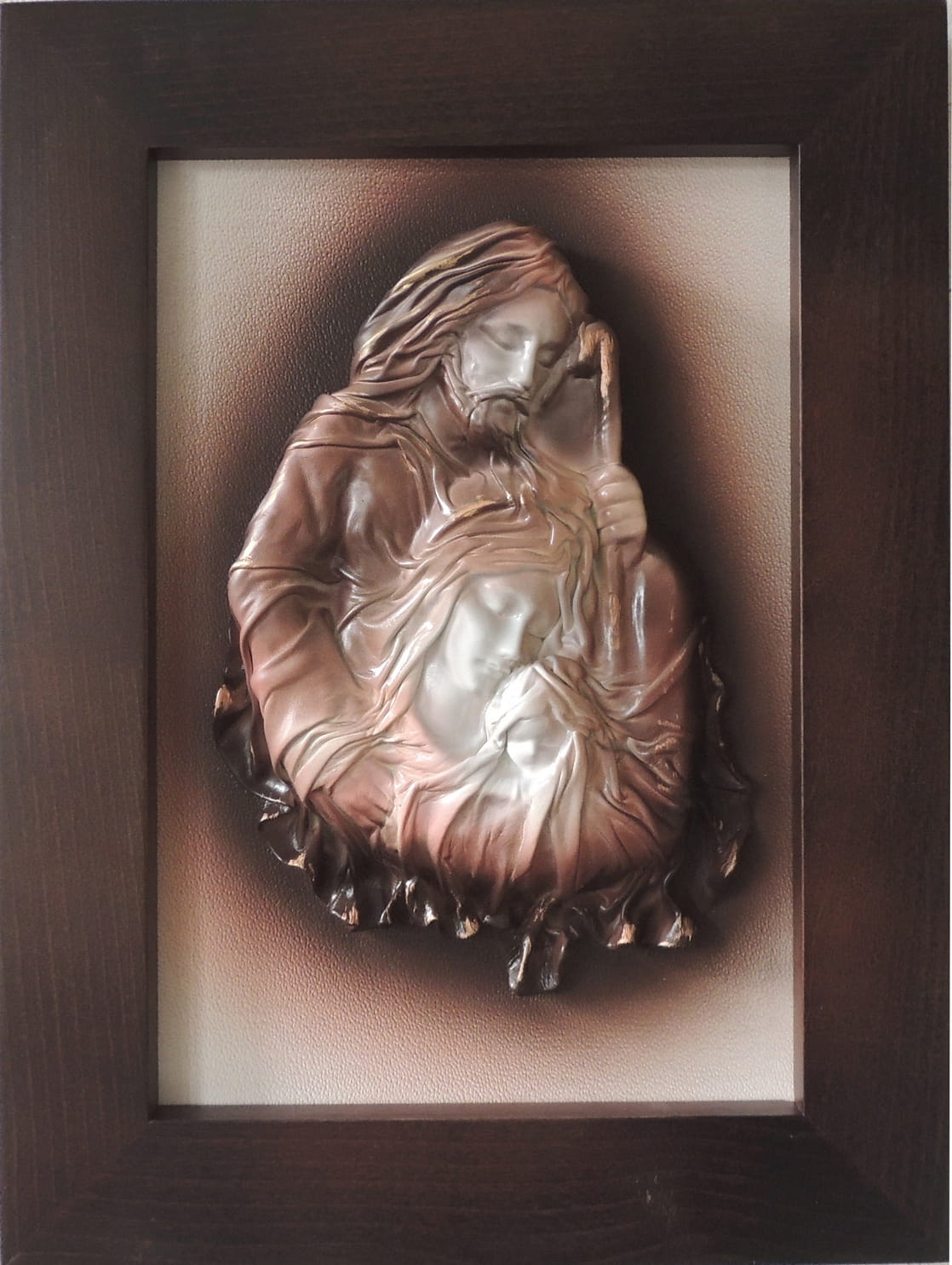 - Obraz z Świętą Rodziną w kolorystyce brąz - bronzo - skóra naturalna - SR5-19