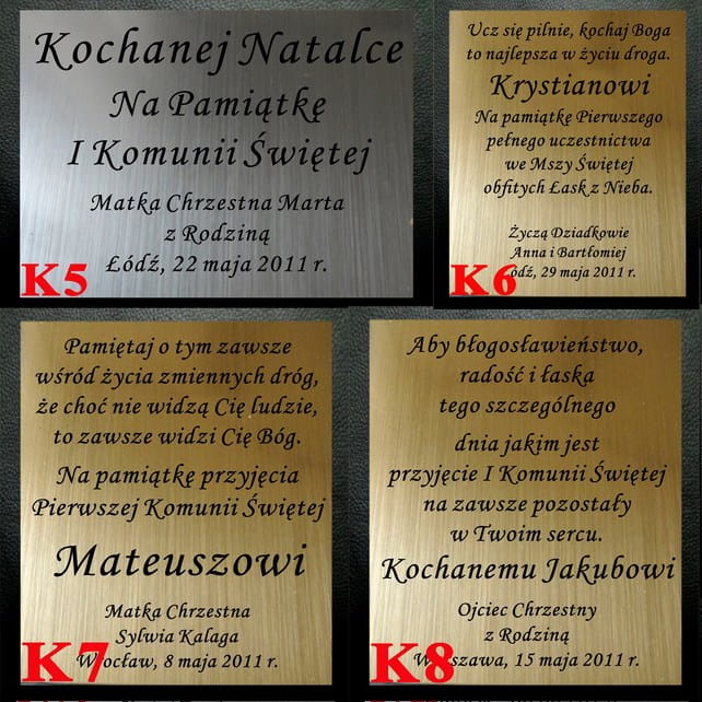 Możesz wybrać jedną z naszych dedykacji (np. K1)