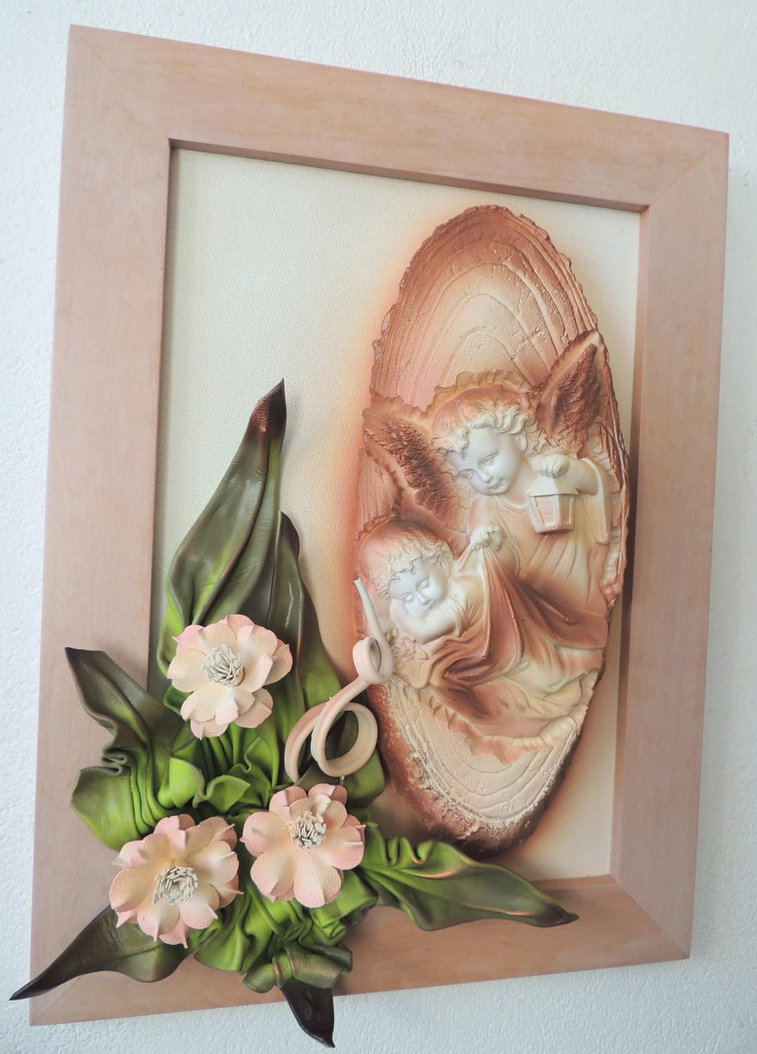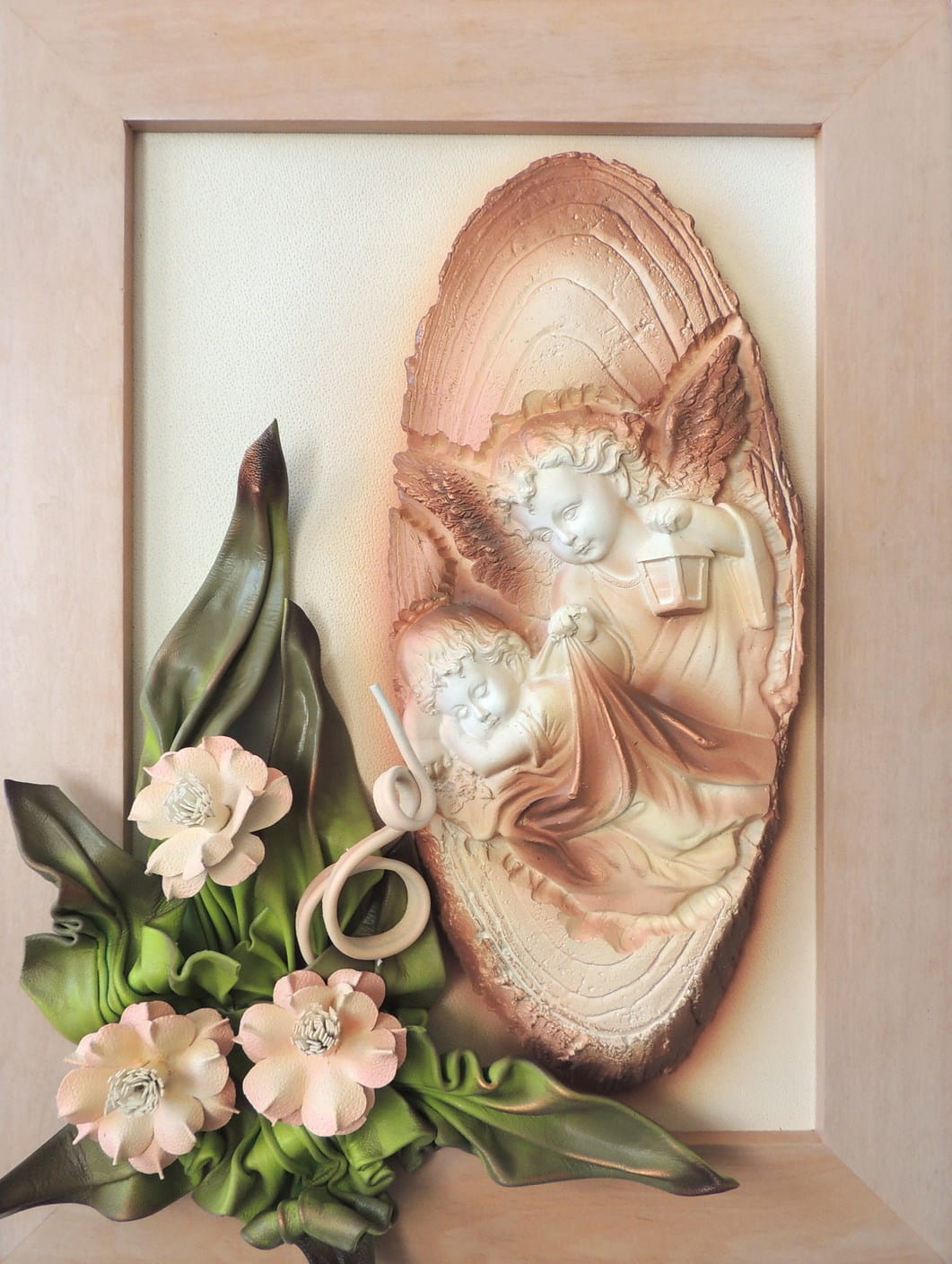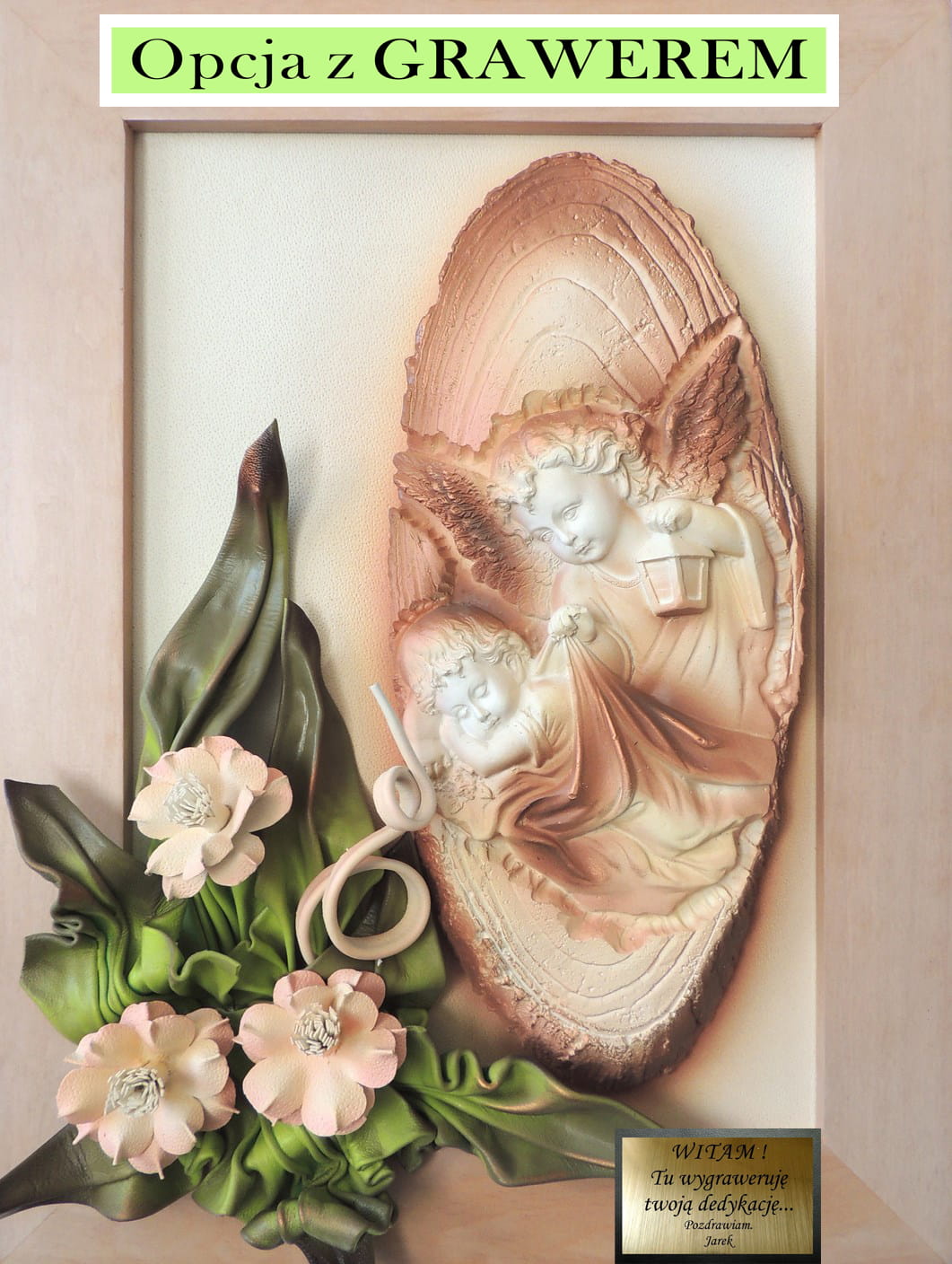 Pamiątka Chrztu Świętego obraz ANIOŁ STRÓŻ + kwiaty - A3S-2