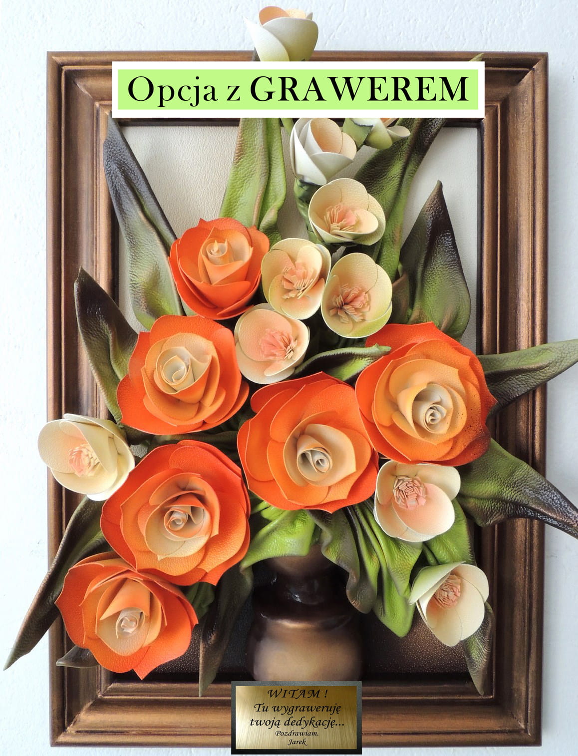 Piękny bukiet kwiatów ze skóry na prezent JUBILEUSZ urodziny Emerytura