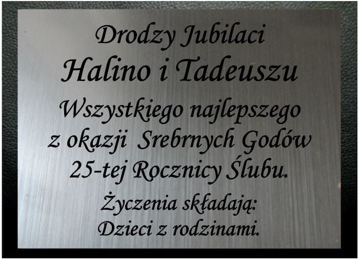 Na tarczy zegara zamieszczamy 1 srebrną tabliczkę z grawerem,