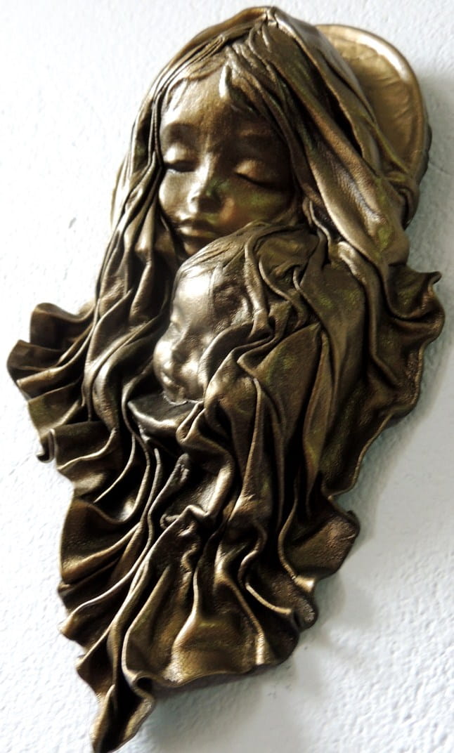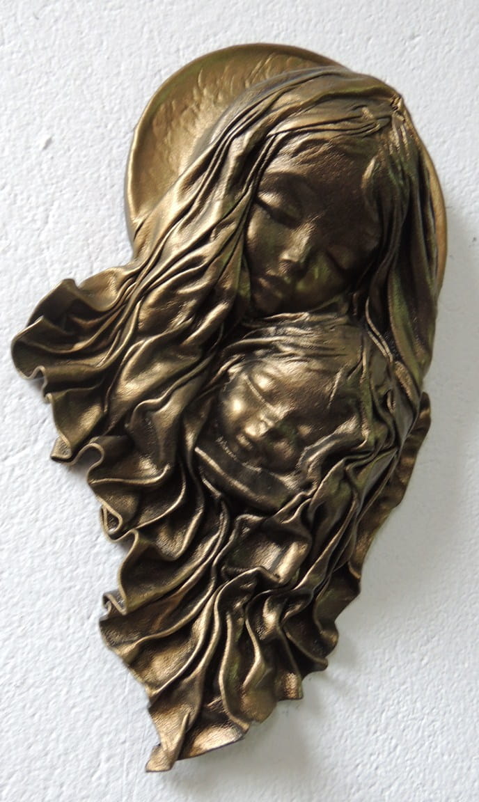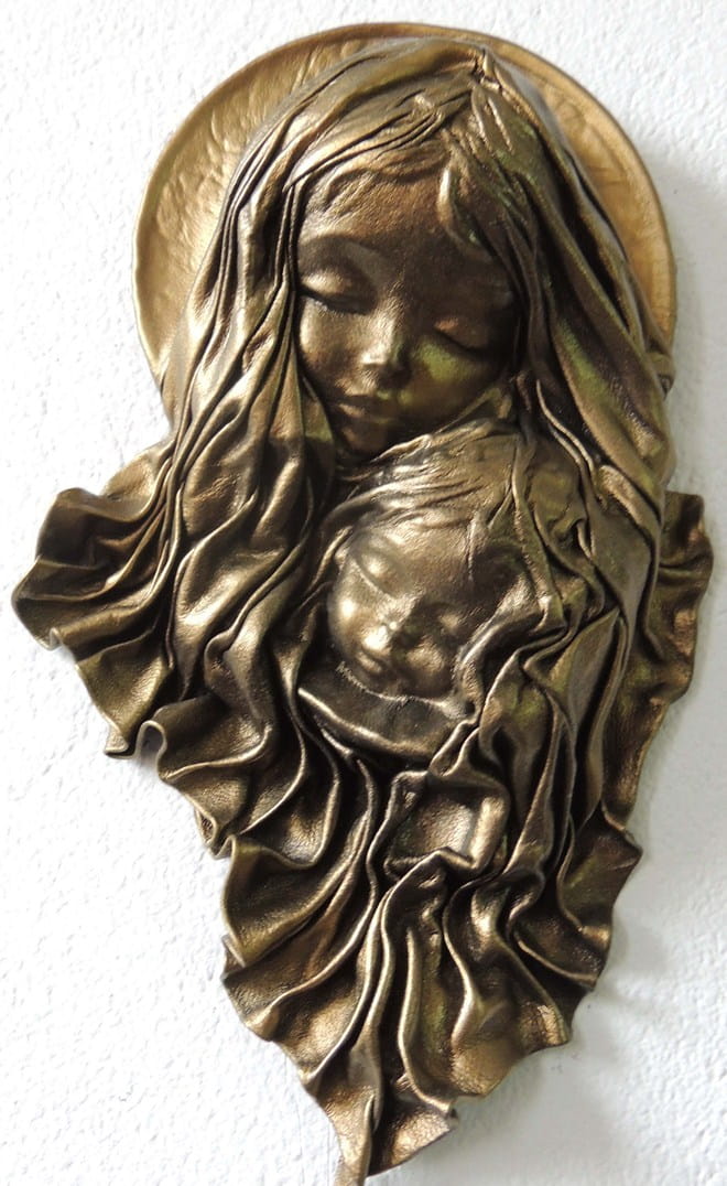 Płaskorzeźba w kolorze mosiężnym MATKA BOŻA - skóra - MM-6