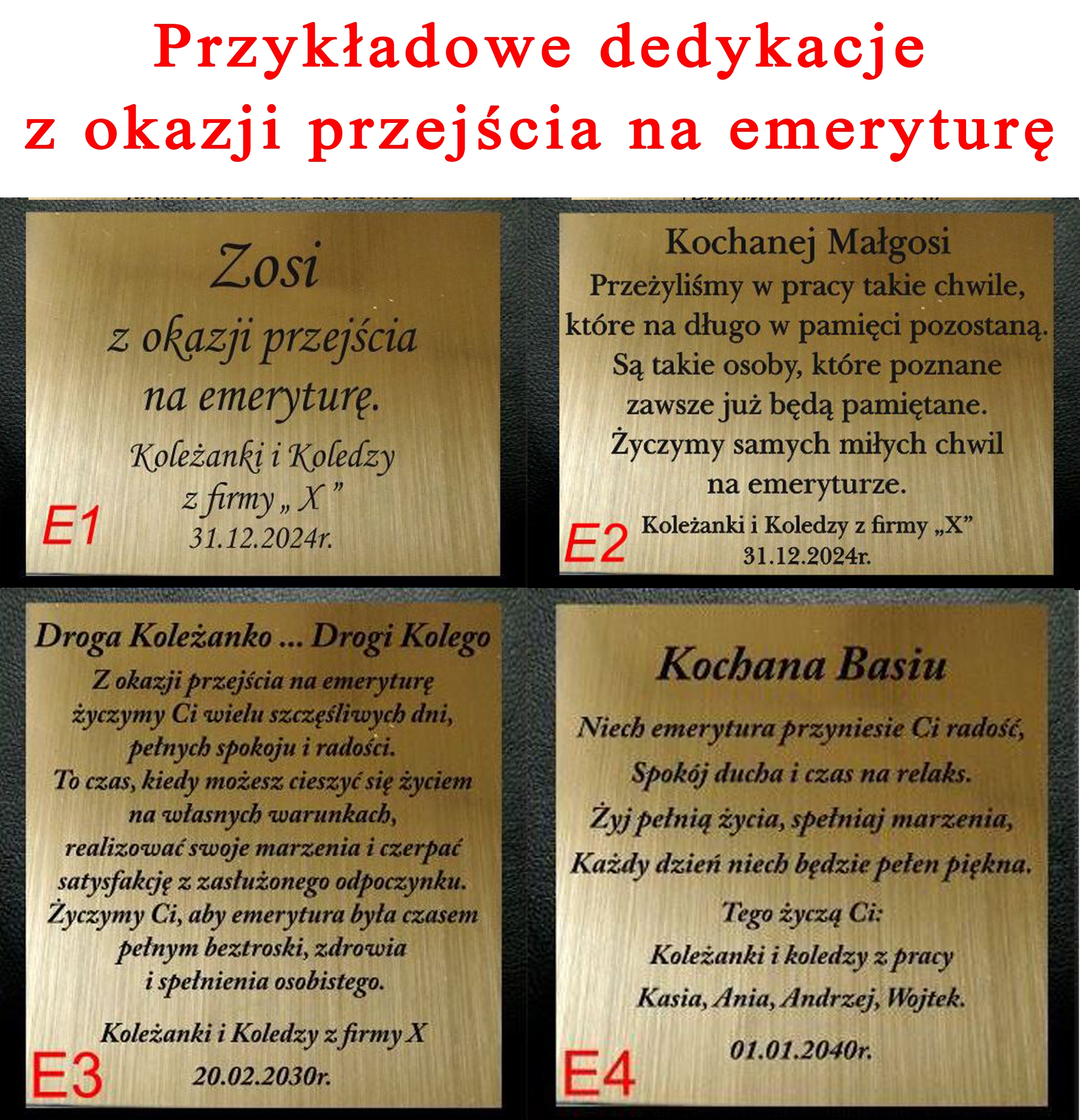 możecie wykorzystać jedną z naszych dedykacji (oznaczonych kodami np. D1), dodać dopisek