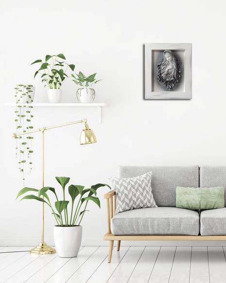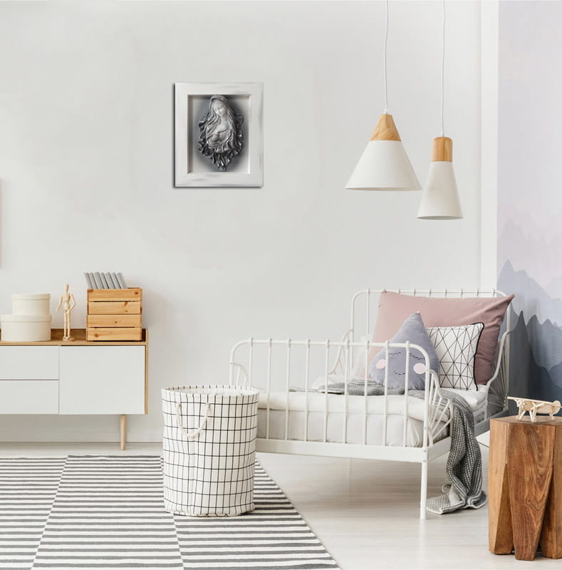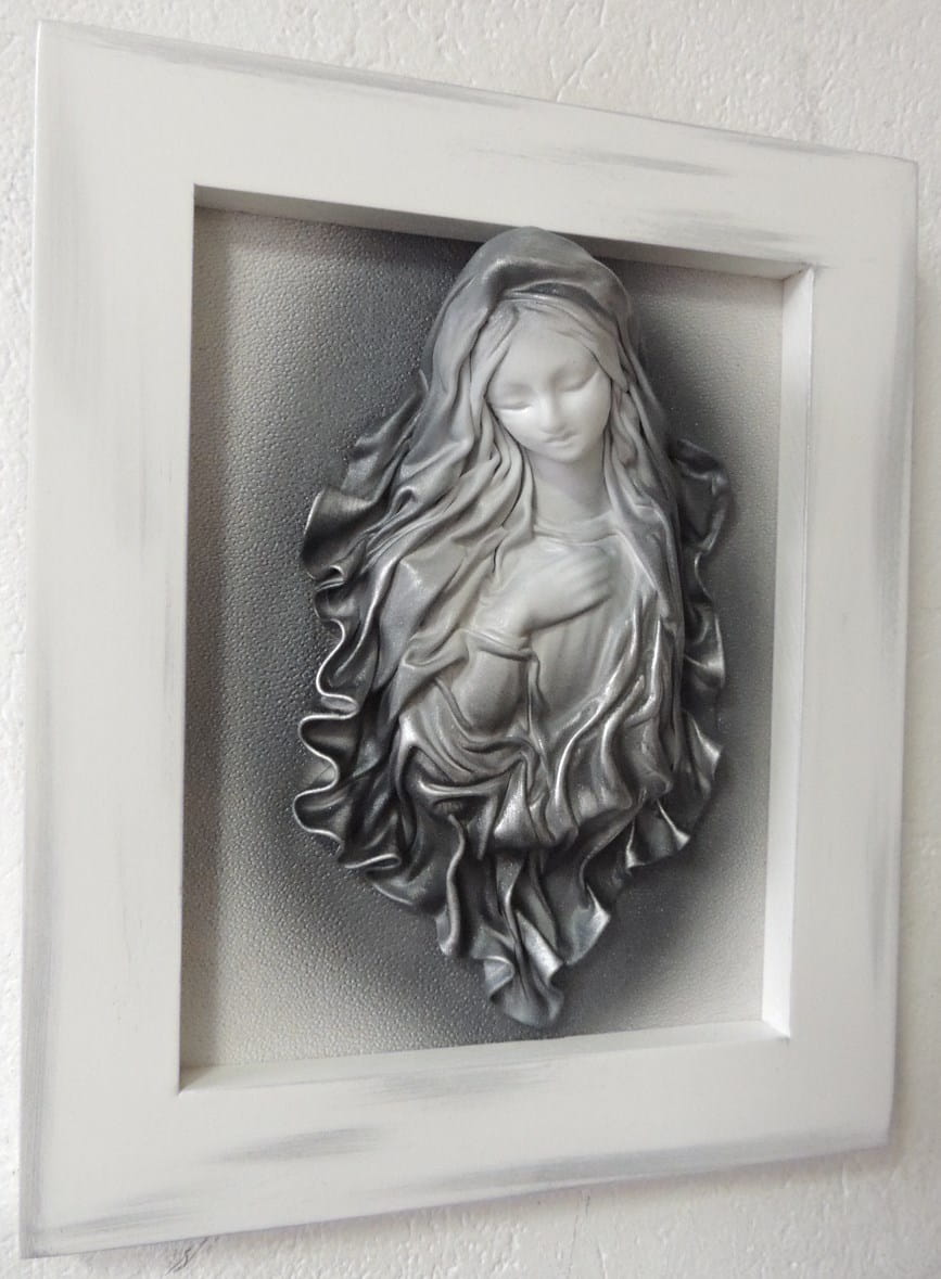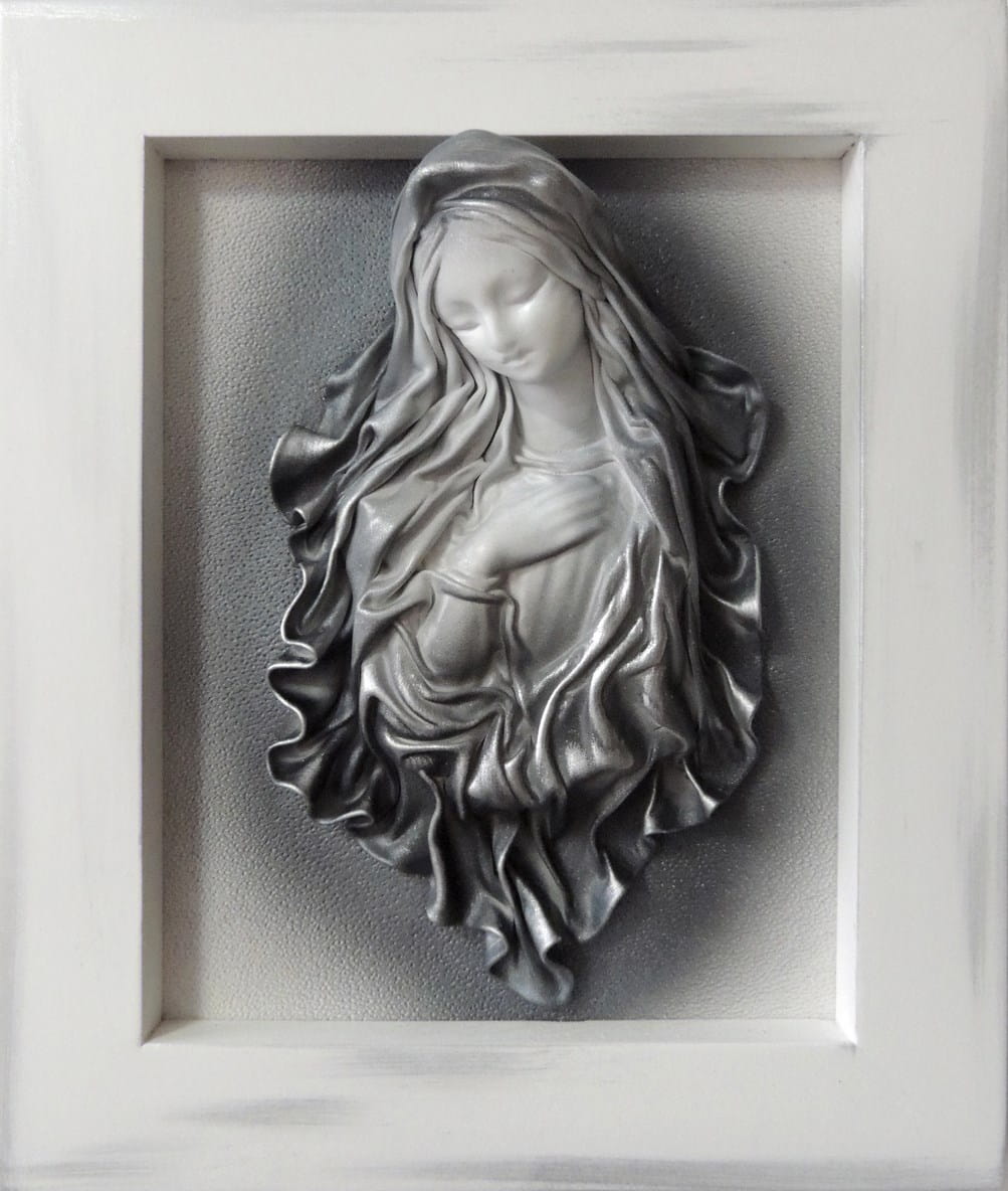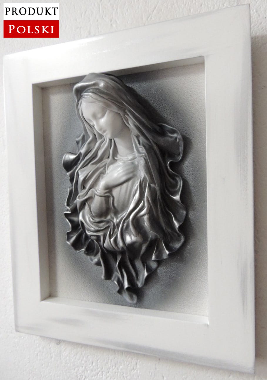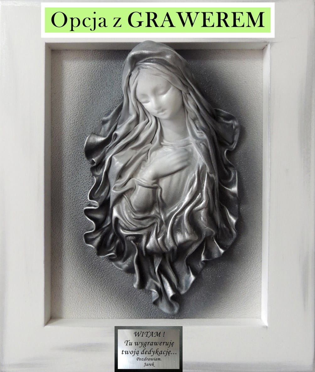 Posrebrzany obrazek z Maryja, Matką Bożą - rękodzieło ze skóry + GRAWER - s1-11