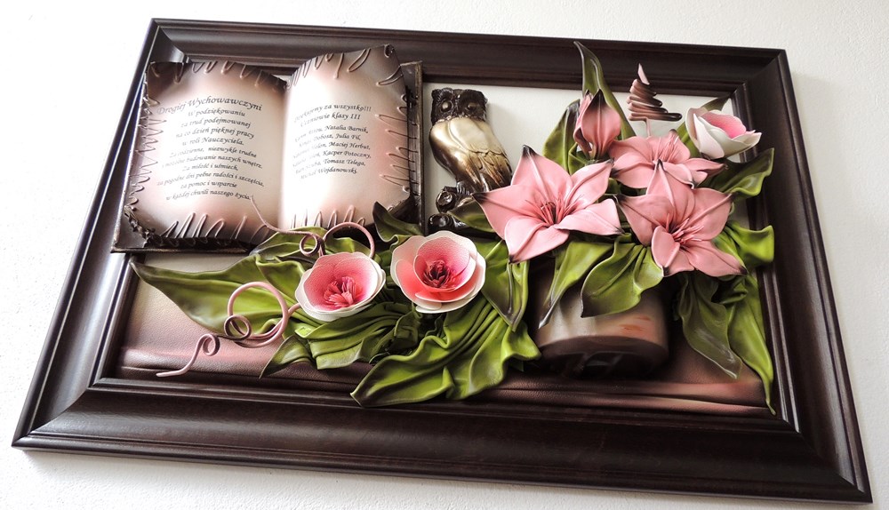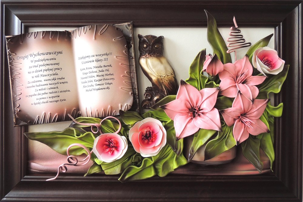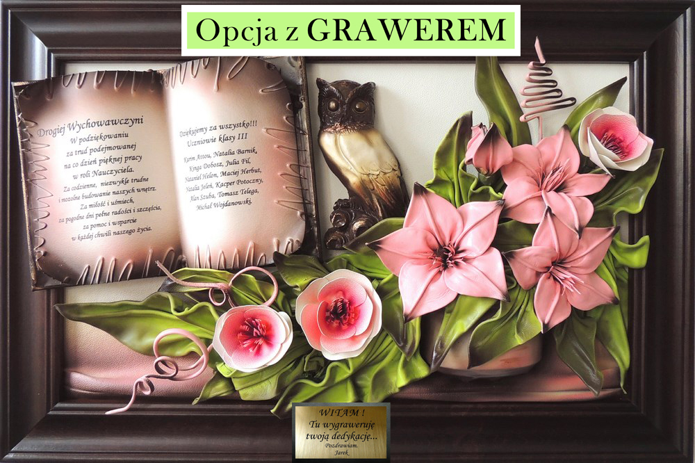 Prezent dla nauczycielki - wychowawczyni na koniec roku, dzień nauczyciela - Obraz z płaskorzeźbą Sowy "Symbolem Mądrości"