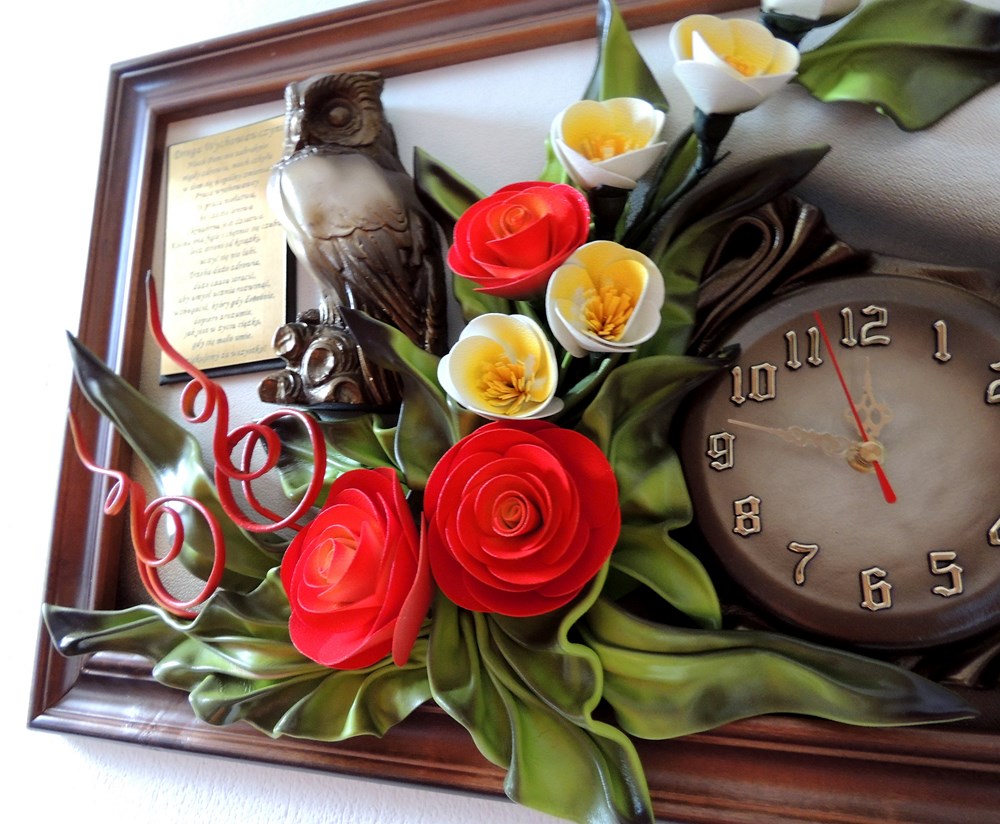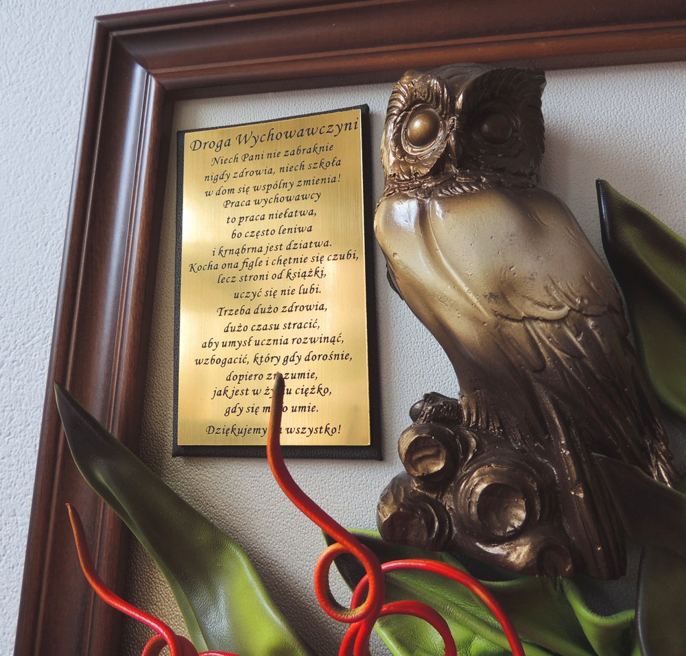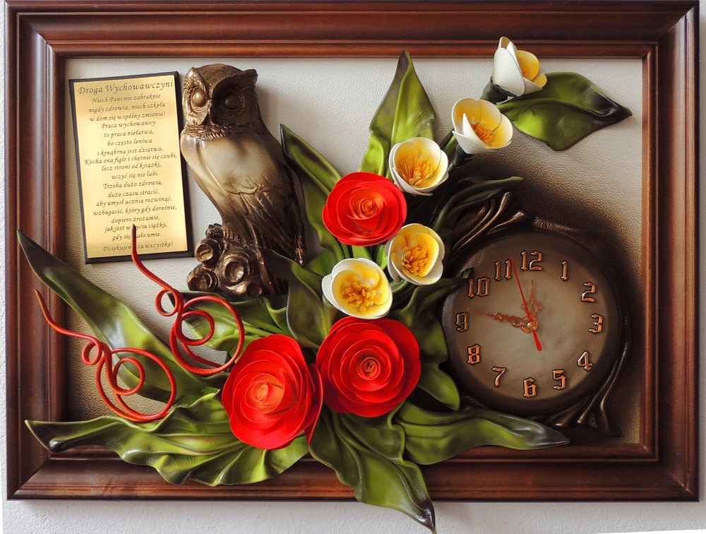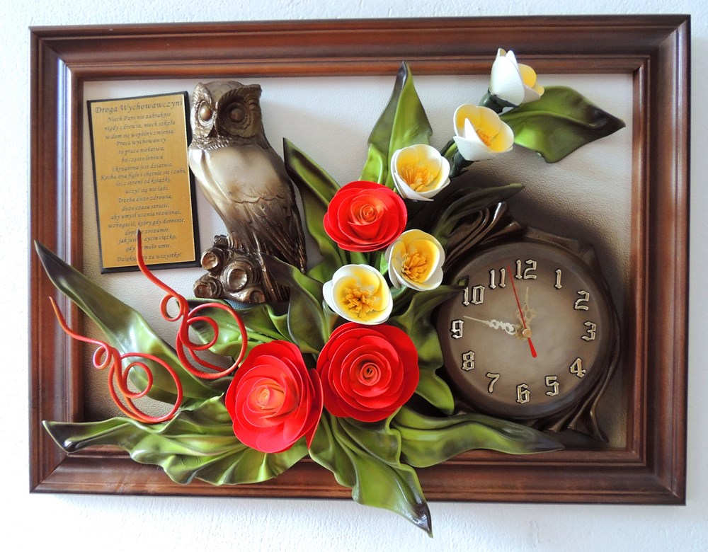 Prezent dla nauczycielki - wychowawczyni na koniec roku, dzień nauczyciela - Obraz z zegarem i płaskorzeźbą Sowy