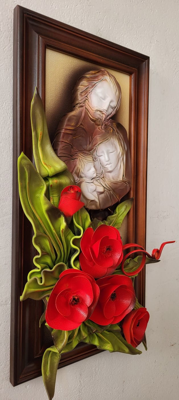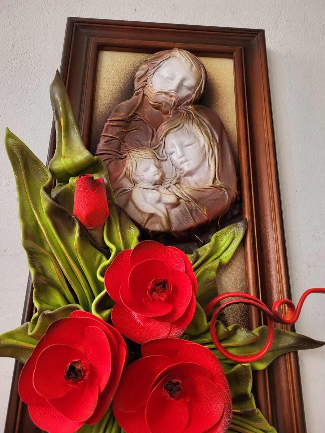 - Obraz z Świętą Rodziną w kolorystyce brąz - bronzo - skóra naturalna - SR5-19