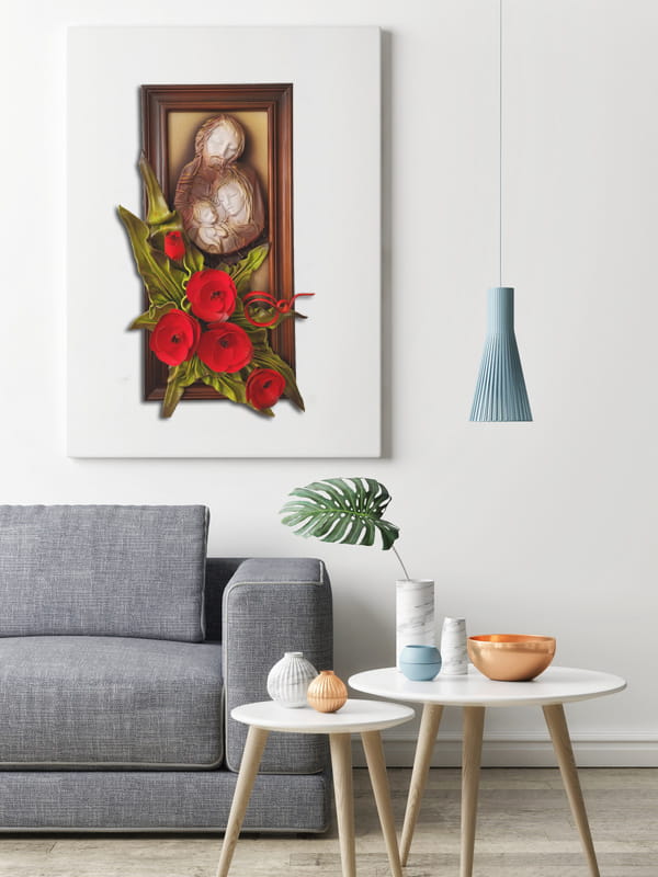 Prezent na 50-tą Rocznicę Ślubu - obraz z Świętą Rodziną + czerwone maki - K4SR-2