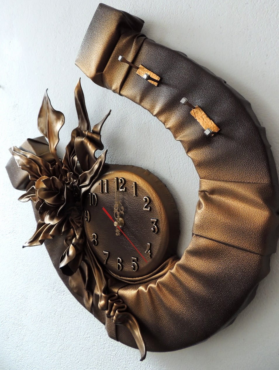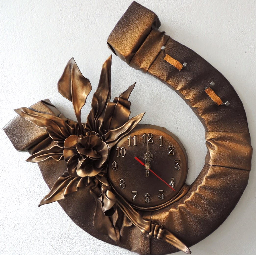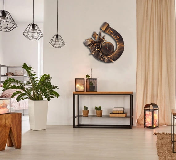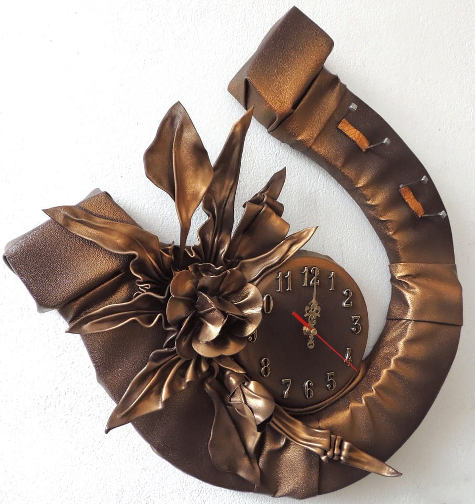 Podkowa na szczęście z zegarem i kwiatem
