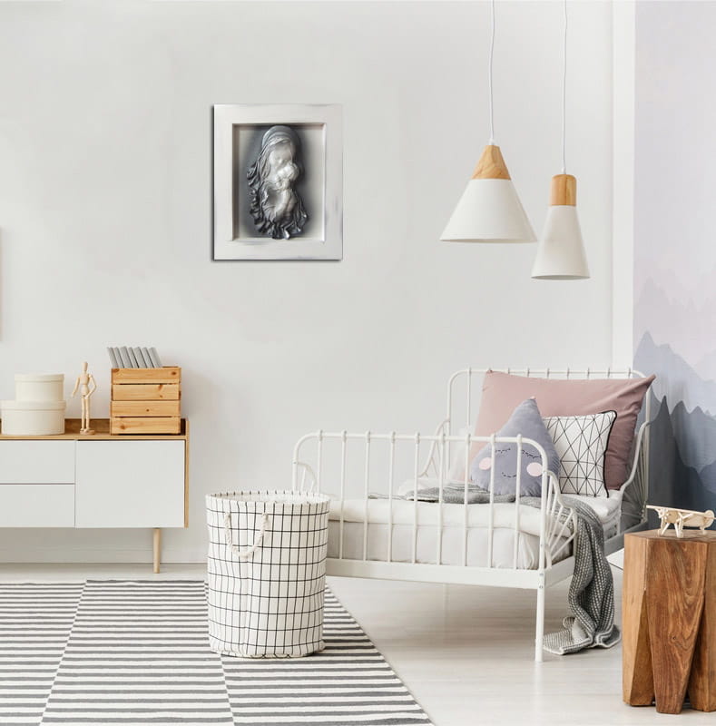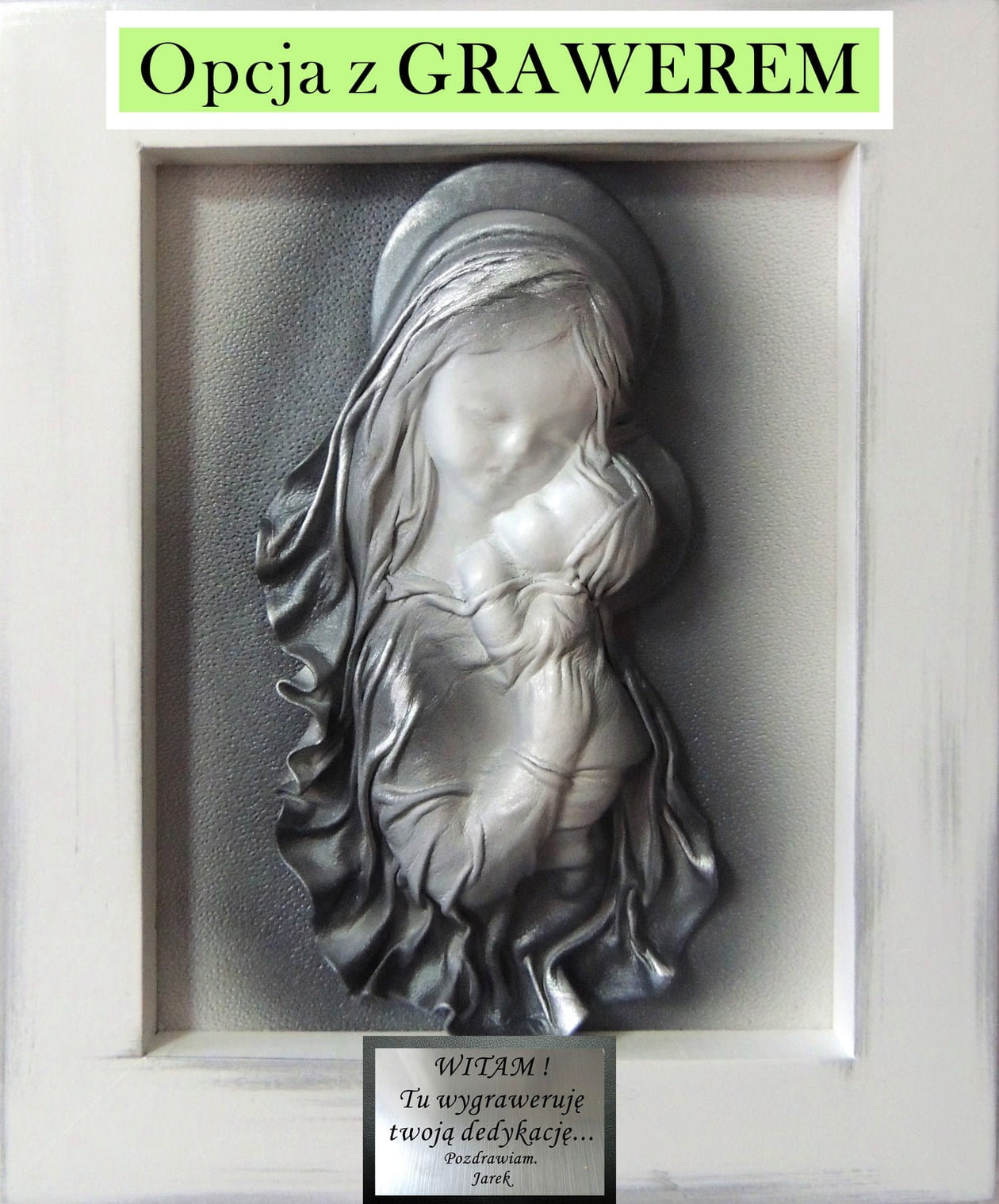 Prezent na CHRZEST pamiątka chrztu SREBRZONY obrazek z Matką Bożą+ GRAWER S1-12