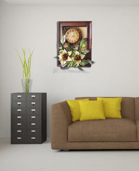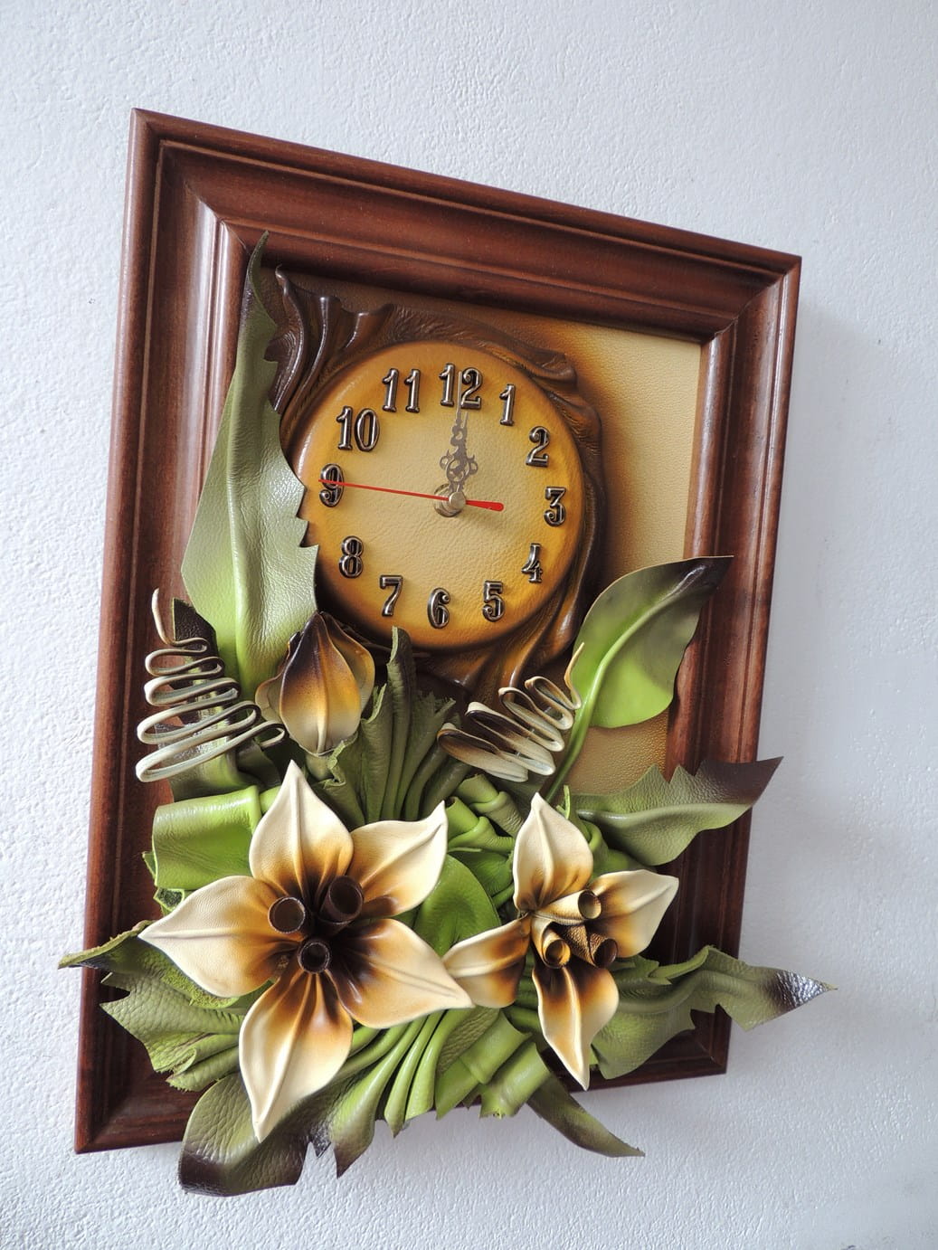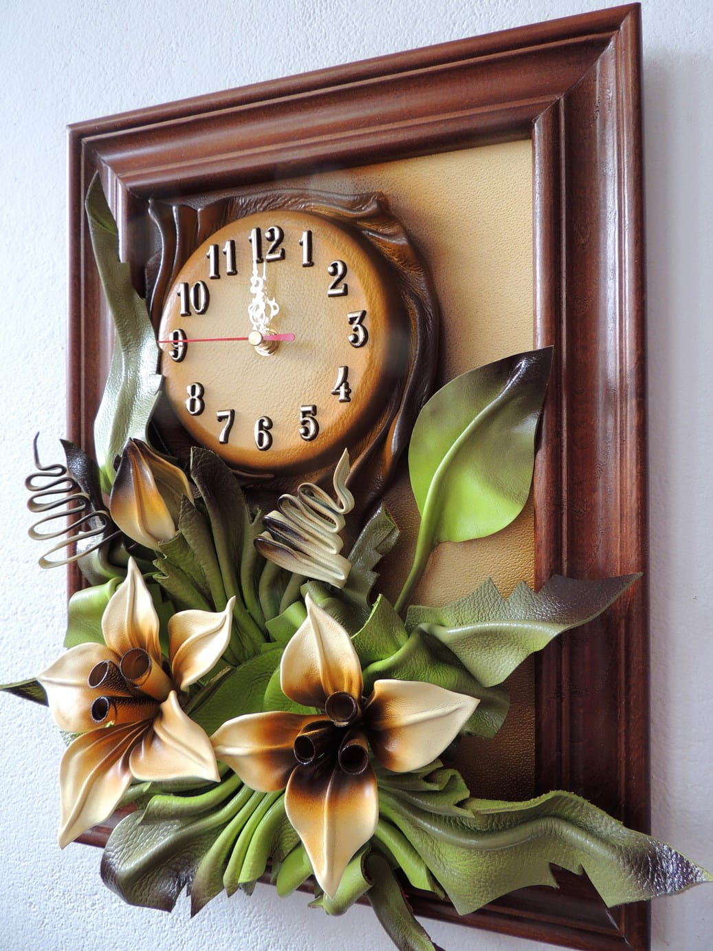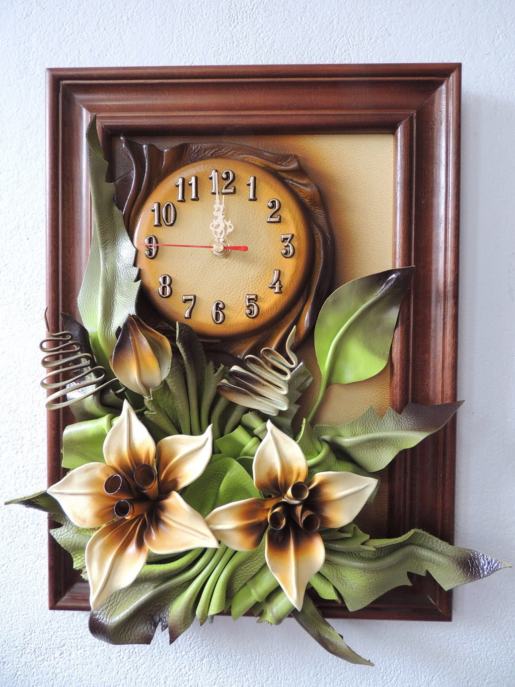 Obrazek ze skóry z liliami + zegar