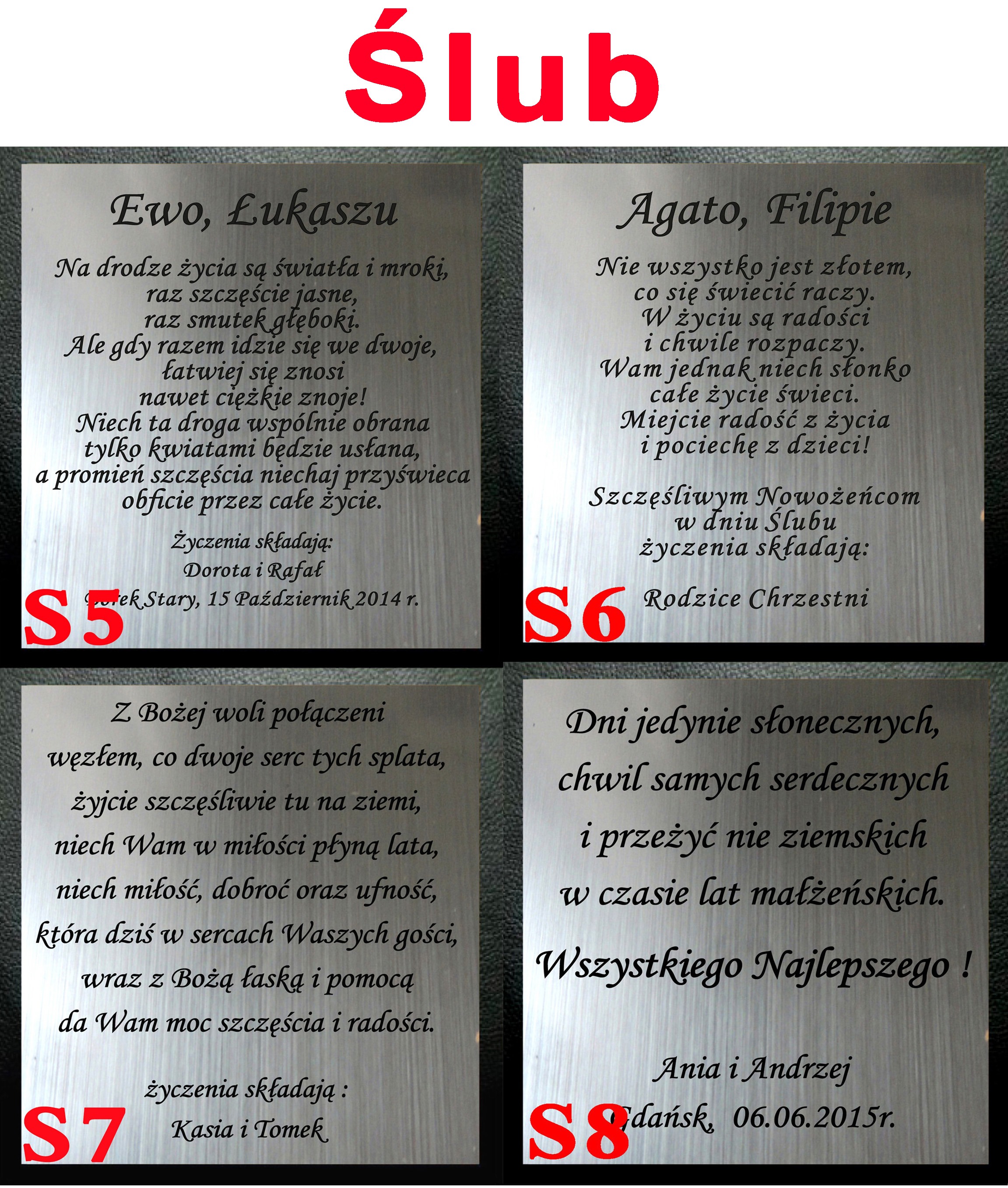 treść dedykacji którą chcą państwo zamieścić