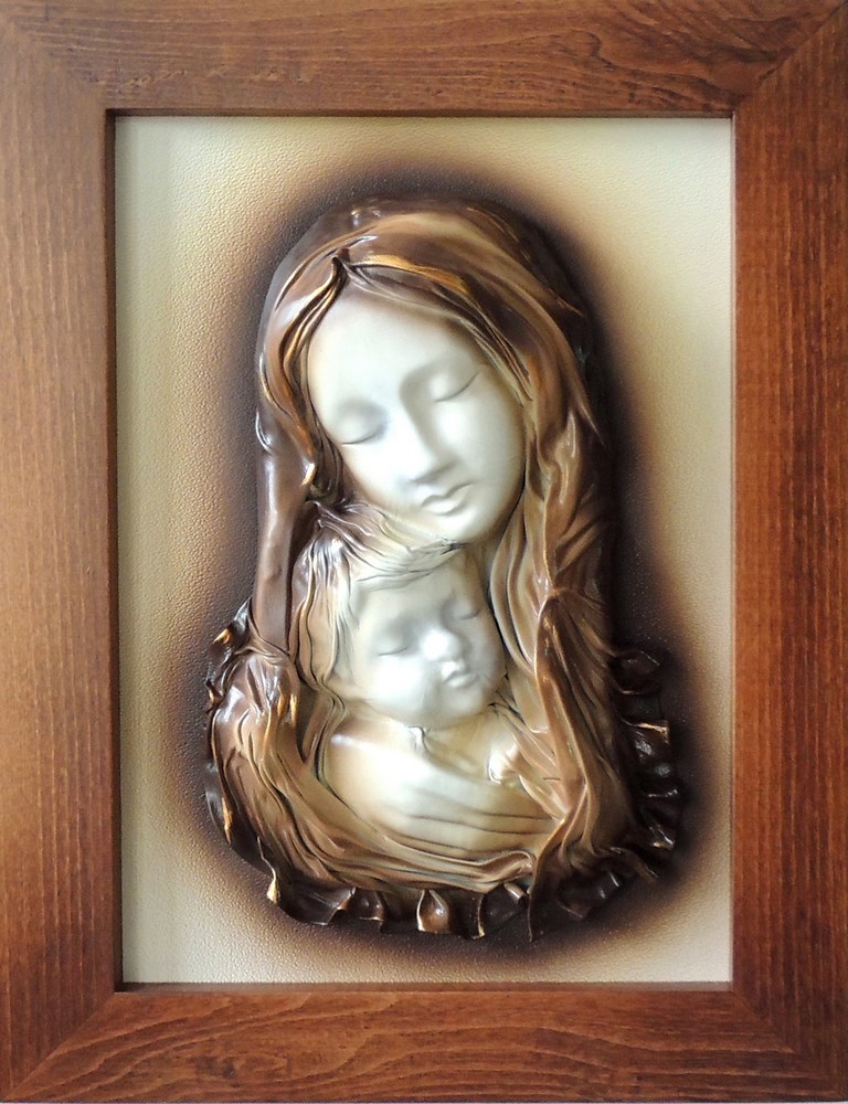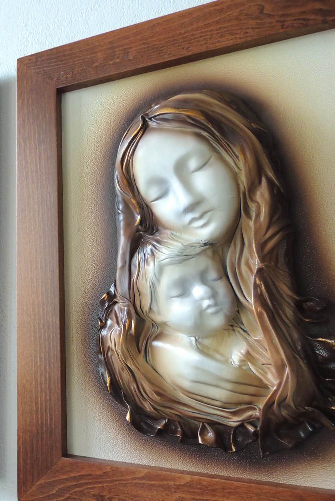 Oryginalny obraz z płaskorzeźbą Maryi