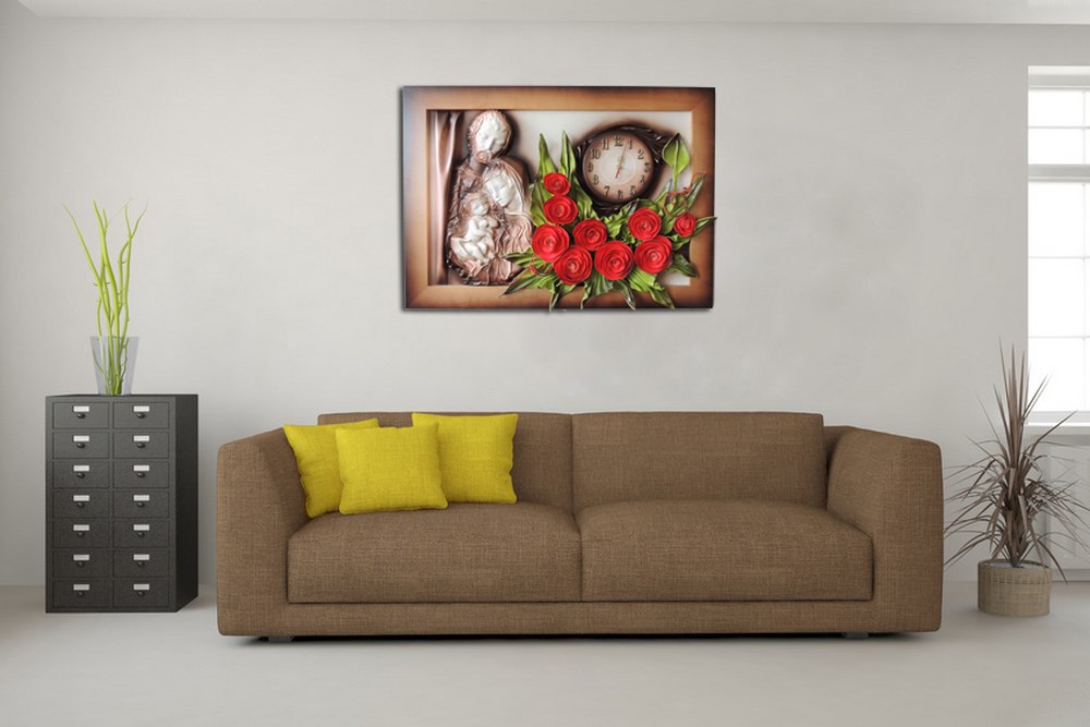 - Nowoczesny obraz na PODZIĘKOWANIE DLA RODZICÓW - kwiaty + zegar - K8D-7