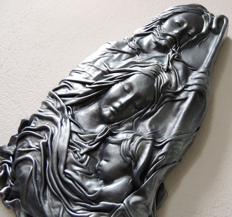 Płaskorzeźba ŚWIĘTA RODZINA w skórze