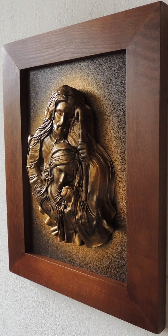 - Obraz z Świętą Rodziną w kolorystyce brąz - bronzo - skóra naturalna - SR5-19