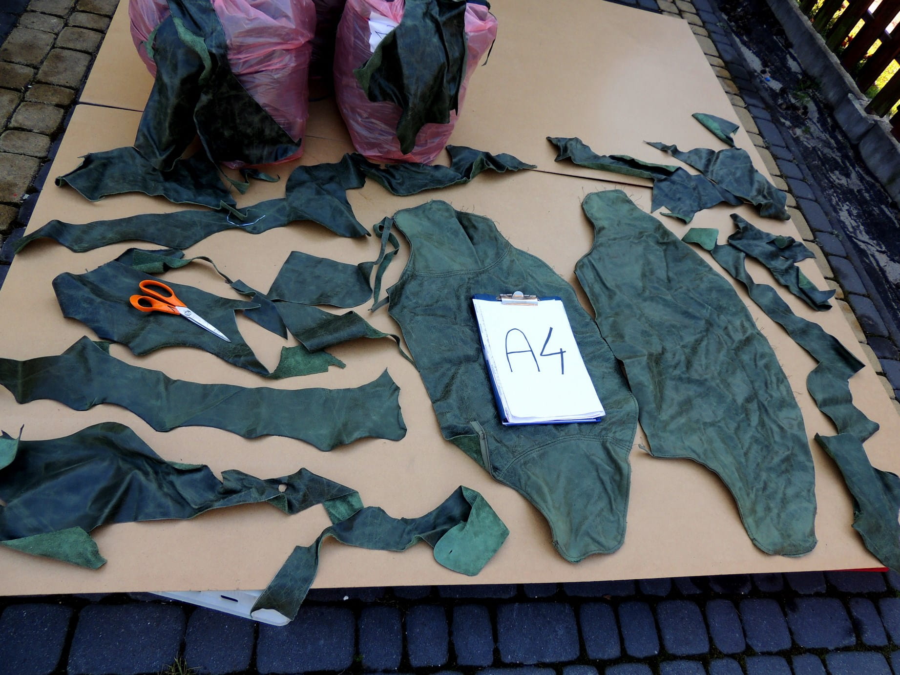 Ścinki skór, kawałki skór Zielona Oliwka - 1,2mm - 19kg