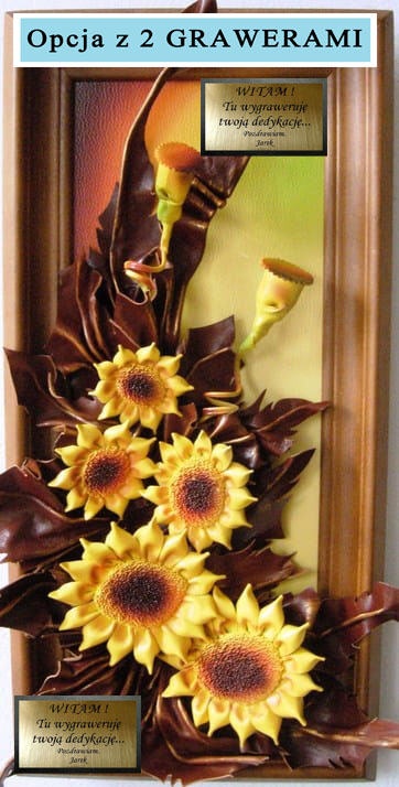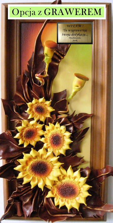 Słoneczniki - obraz skórzany na prezent dla kobiety z okazji urodzin i inne okazje