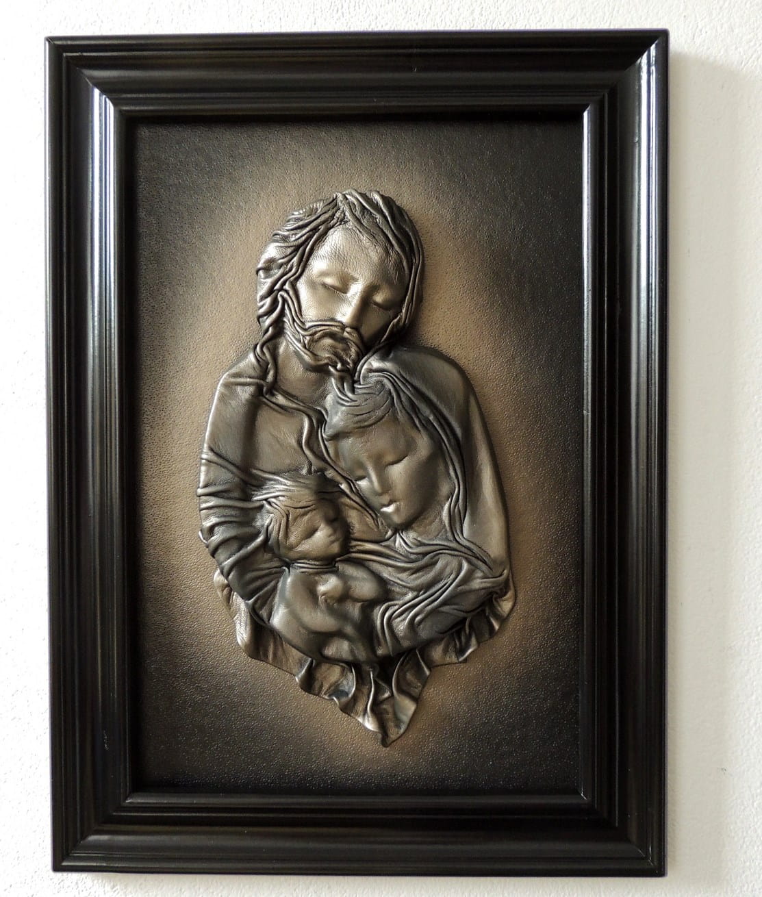 - Obraz z Świętą Rodziną w kolorystyce brąz - bronzo - skóra naturalna - SR5-19