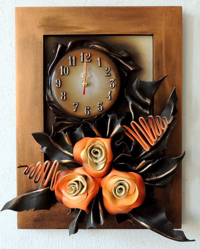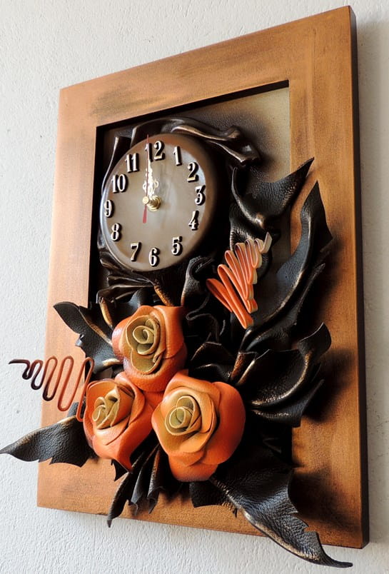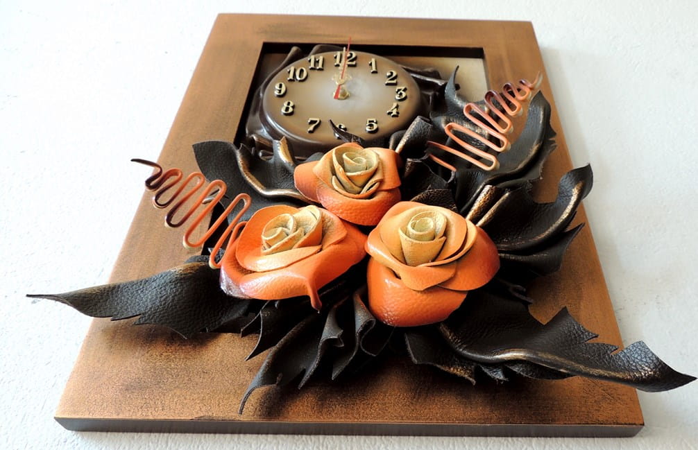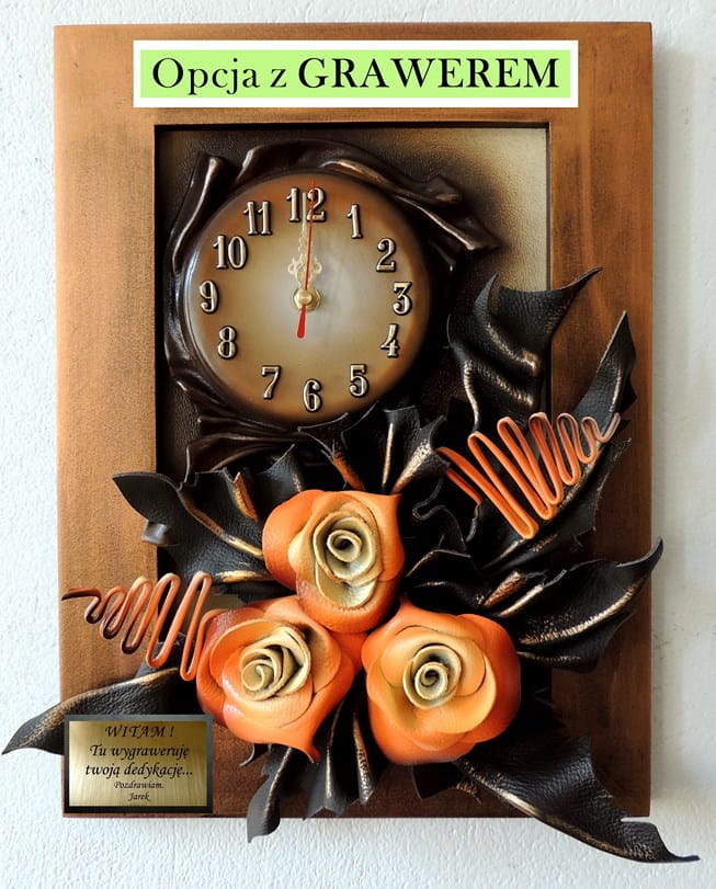 Trójwymiarowy obraz z zegarem i różami ze skóry - K2Z-4