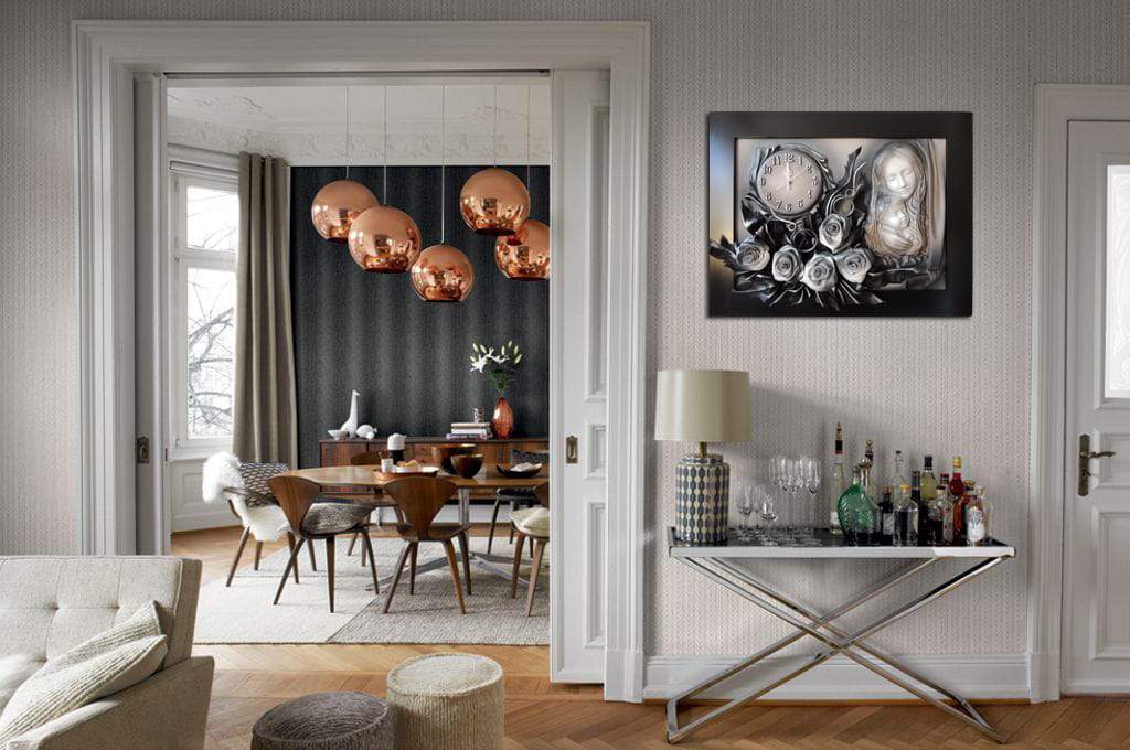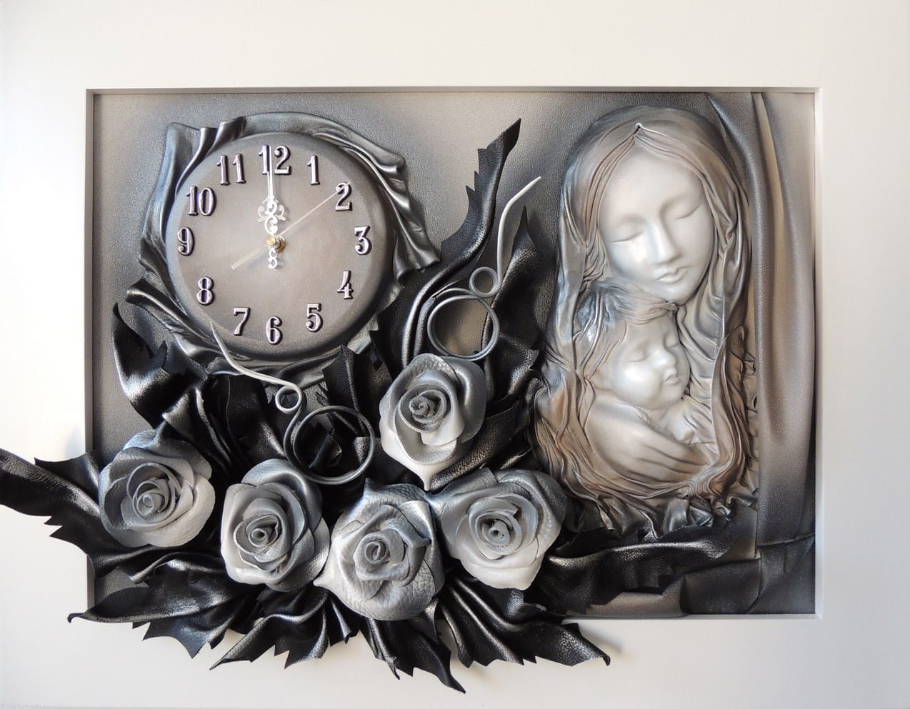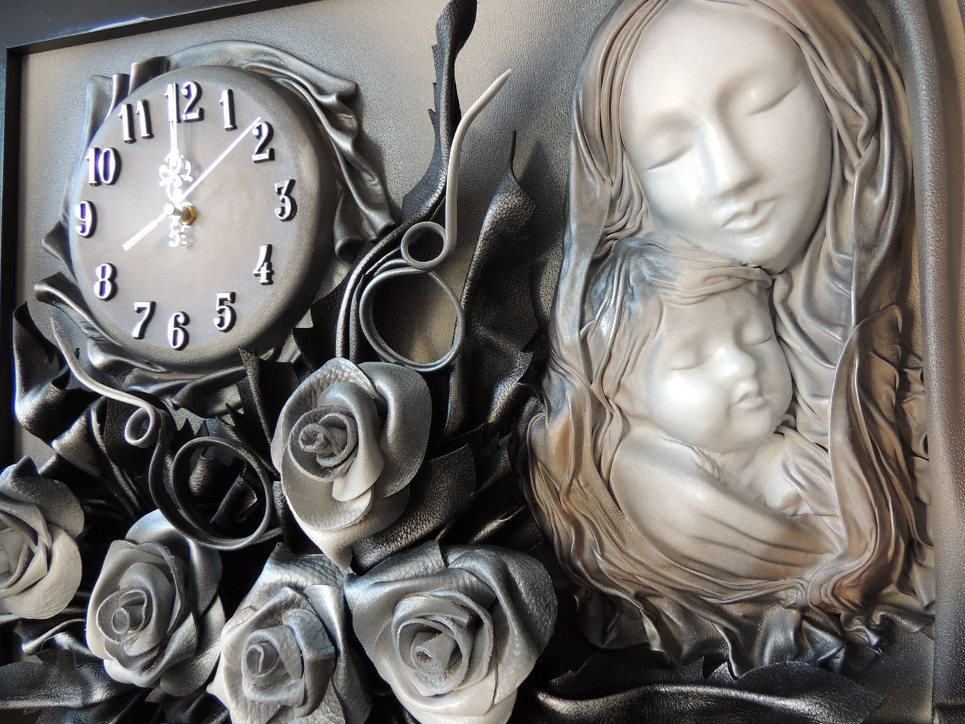 Wyjątkowy Obraz Matki Boskiej z różami + zegar PREZENT ślub JUBILEUSZ podziekowanie - K6sz-4