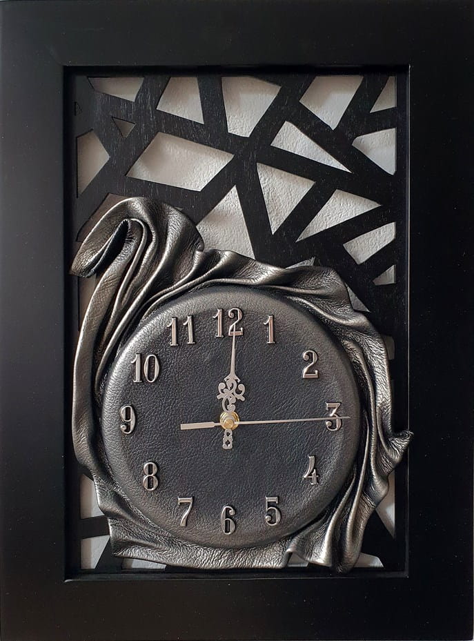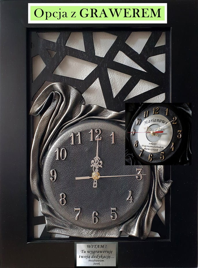 Na tle obrazu, ramie lub tarczy zegarowej zamieszczamy srebrną tabliczkę z grawerem ,