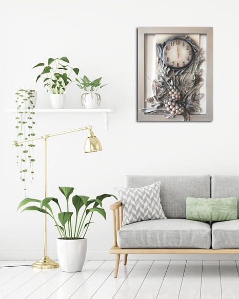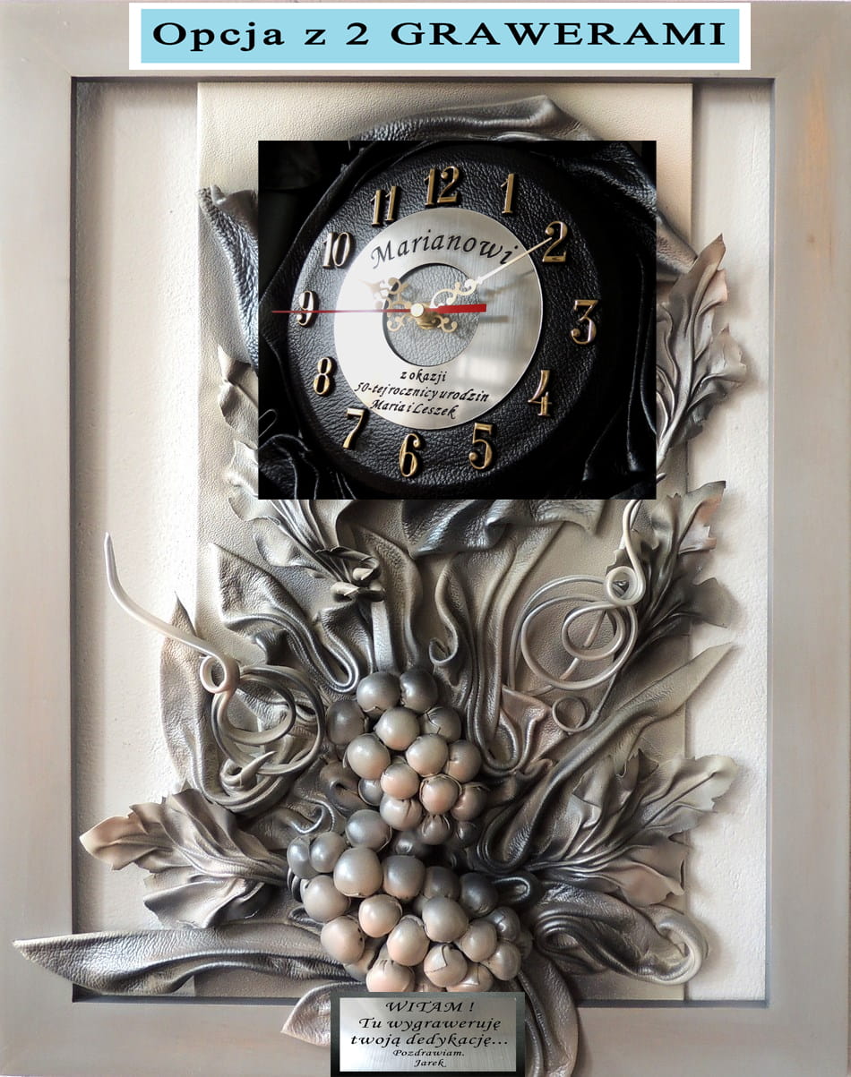 Zegar ścienny szary posrebrzany - Winogrona ze skóry - RZ6-1
