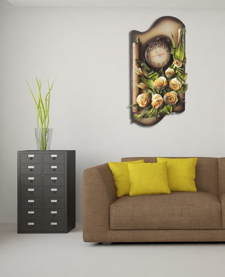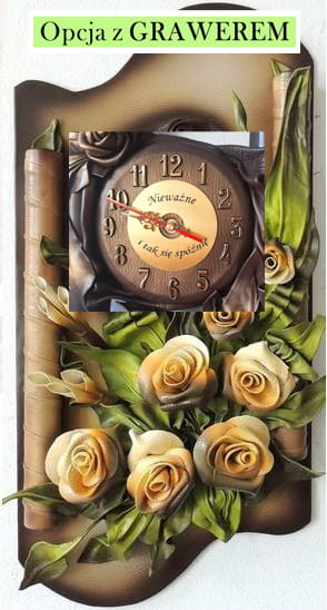 Zegar ścienny z różami ze skóry RĘKODZIEŁO ARTYSTYCZNE na prezent jubileuszowy Z3-6