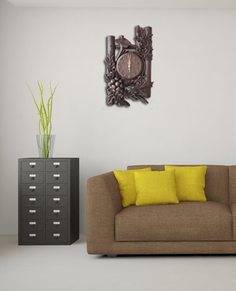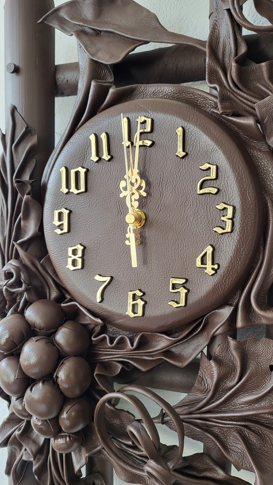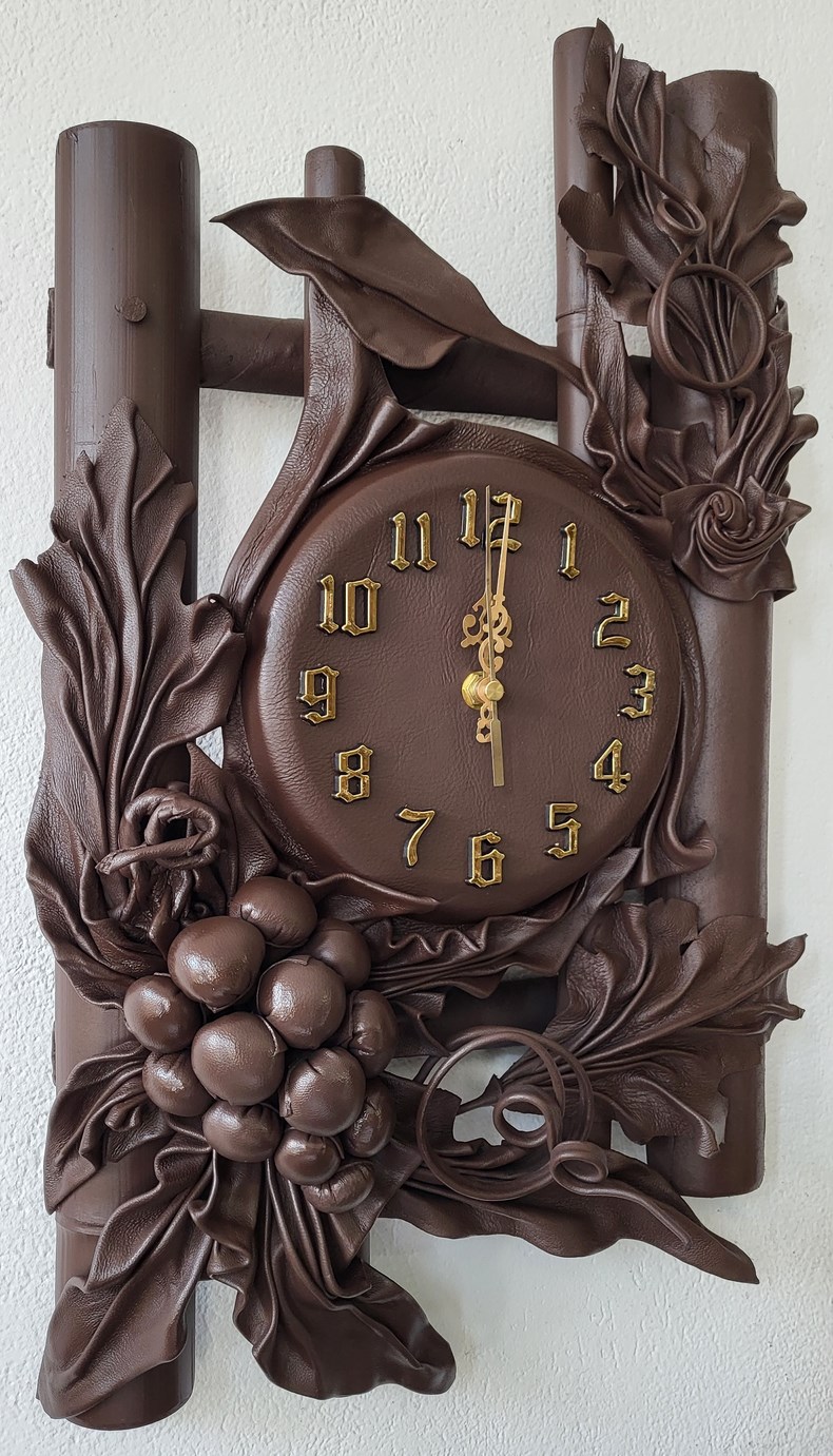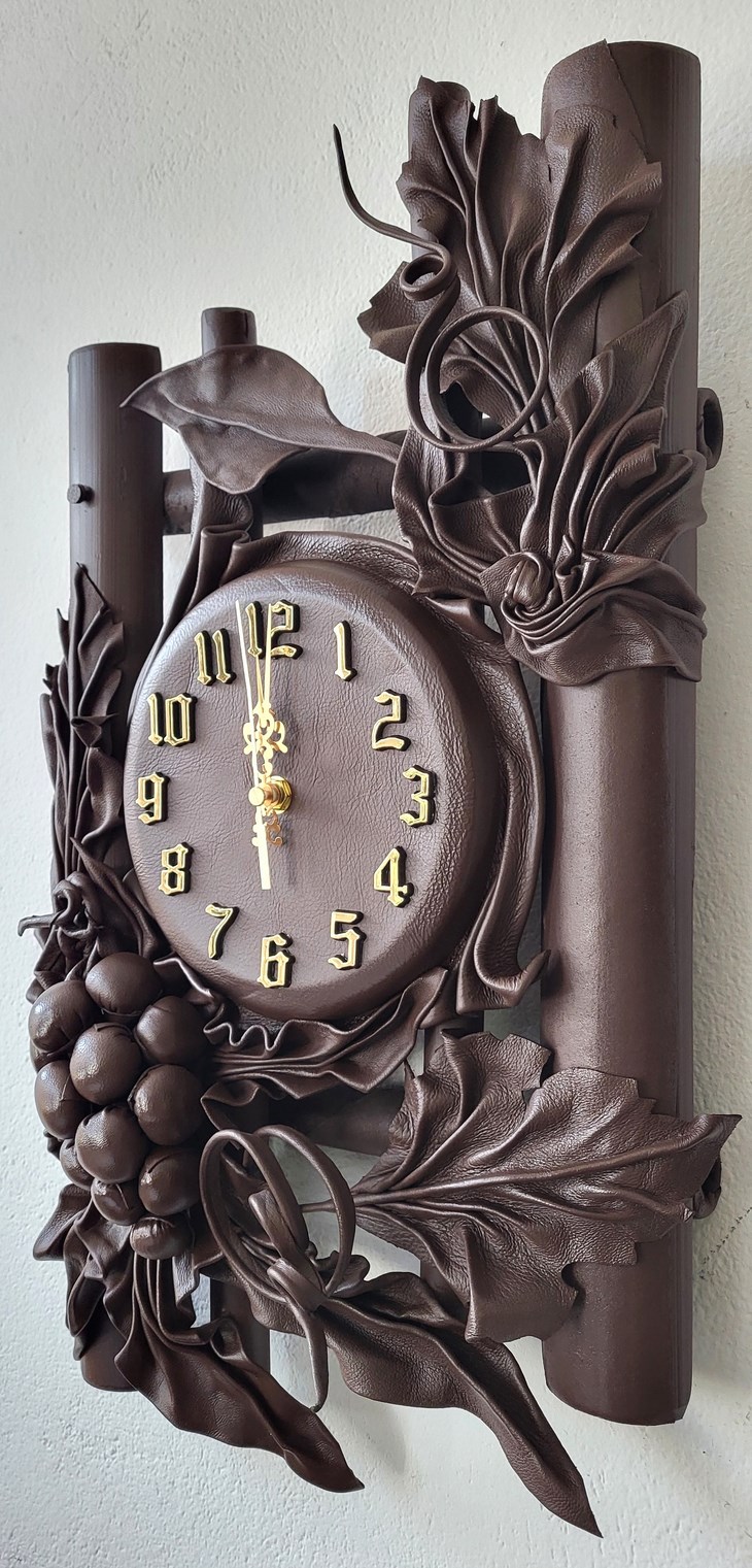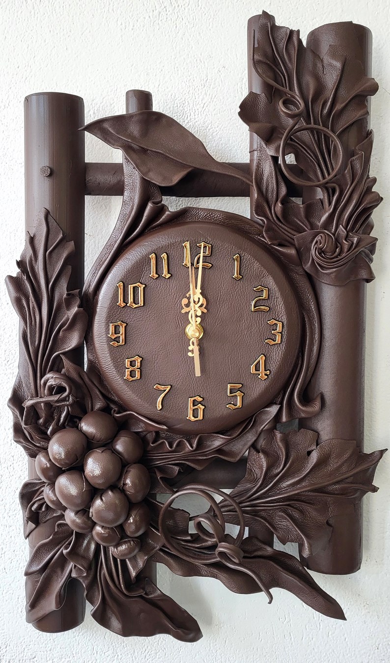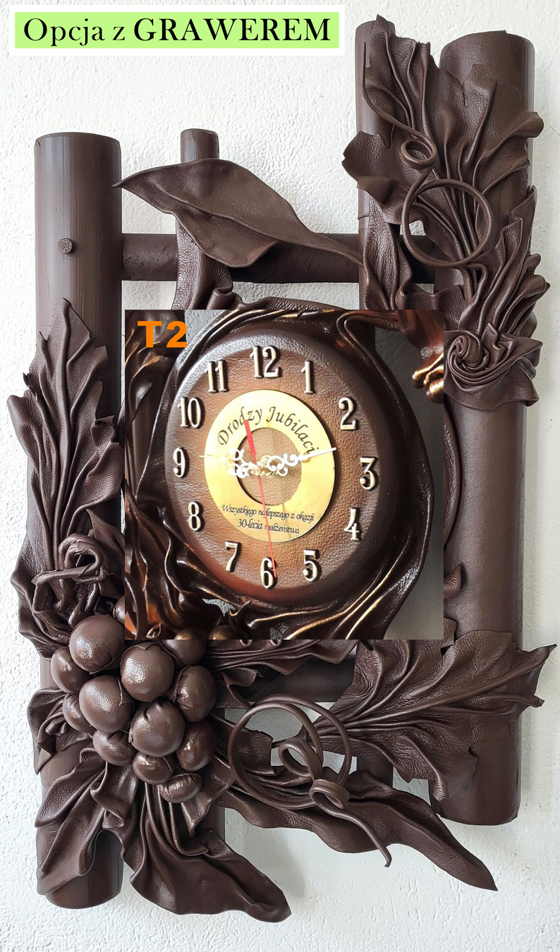 Zegar ścienny z winogronem - skóra-bambus - Prezent na jubileusz