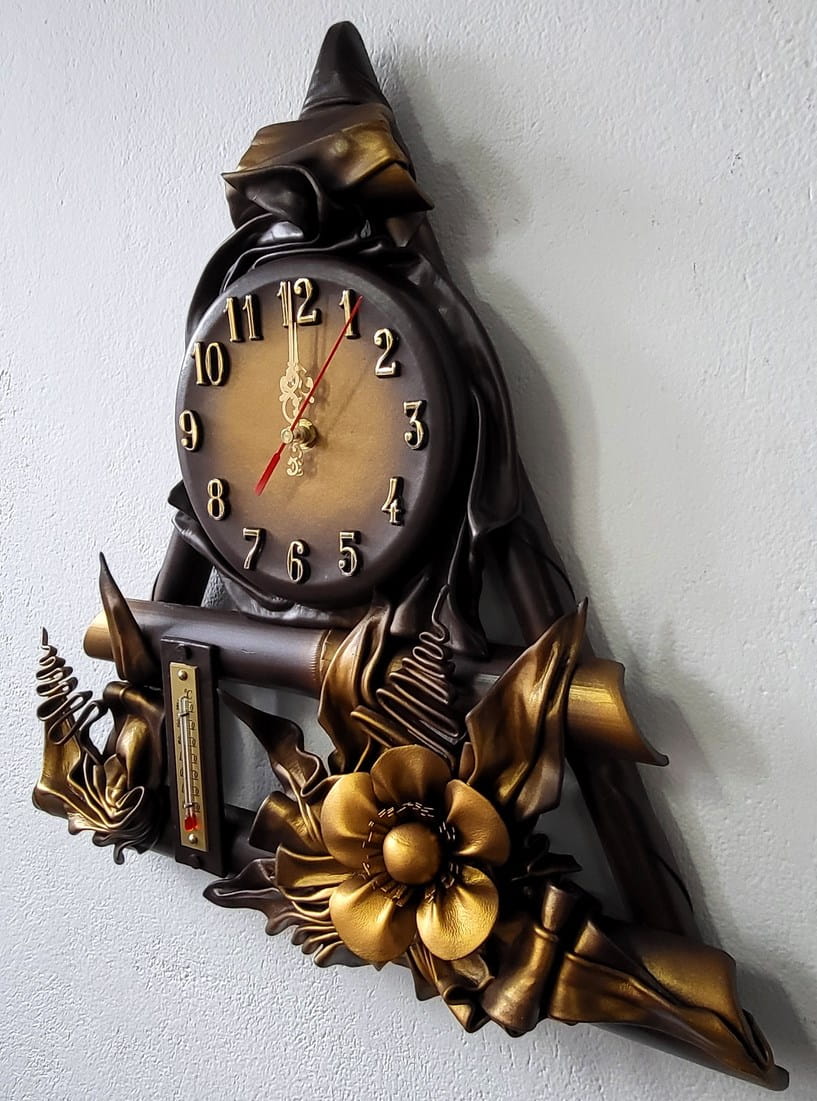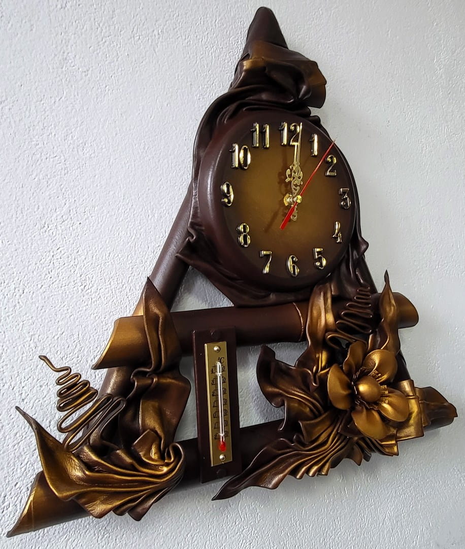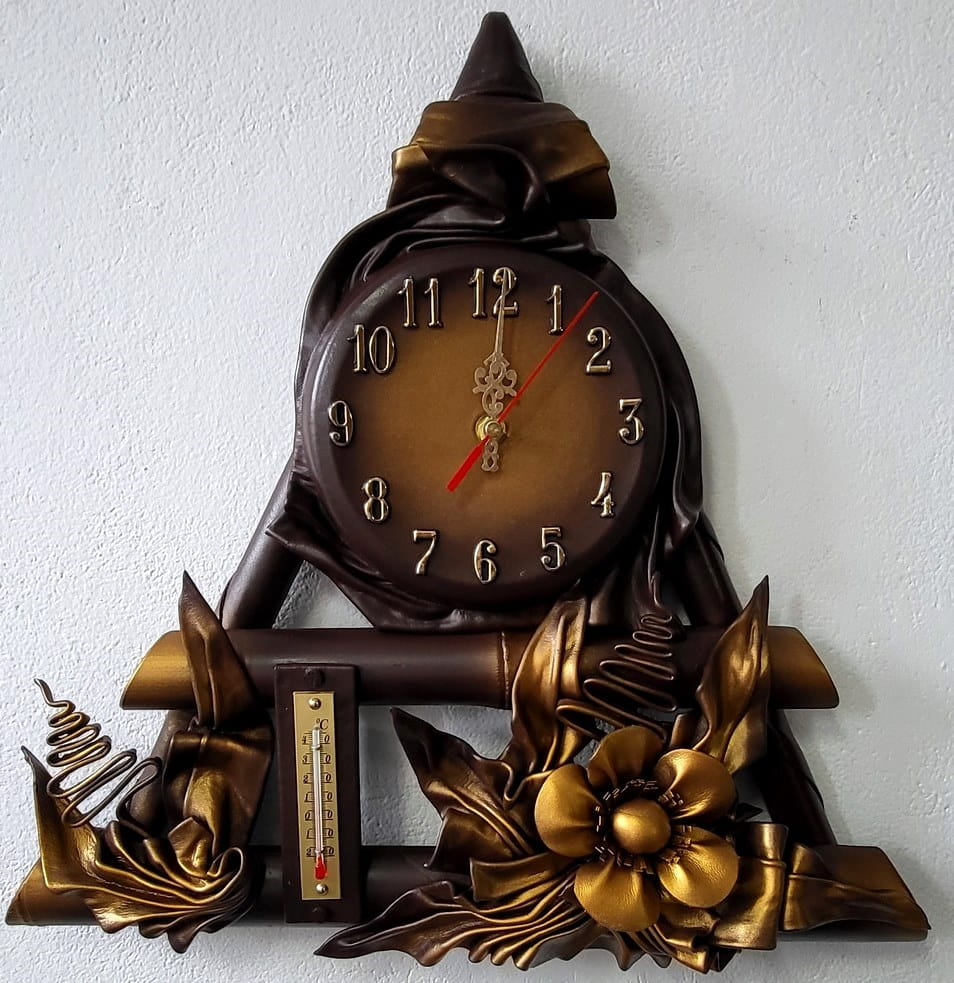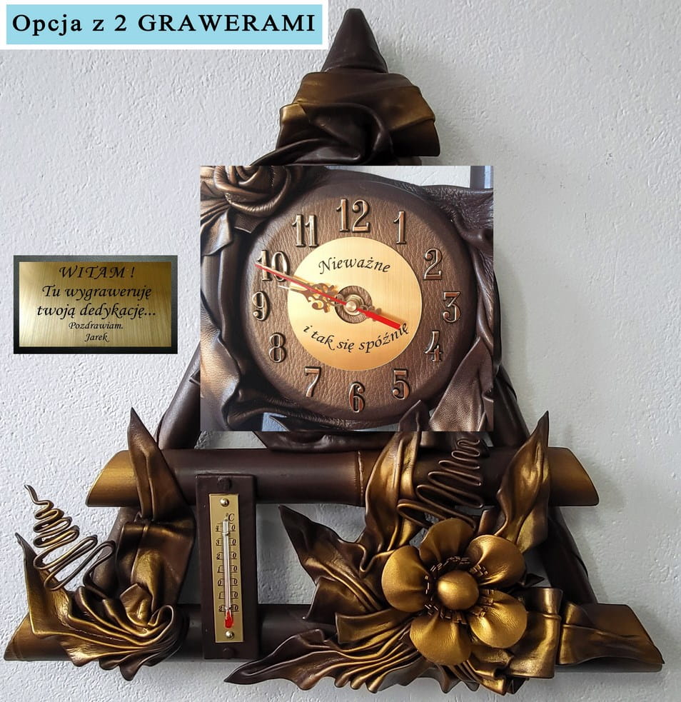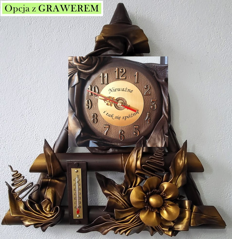 Zegar ścienny ze skóry + termometr, RĘKODZIEŁO na prezent JUBILEUSZOWY