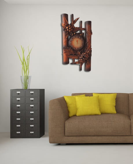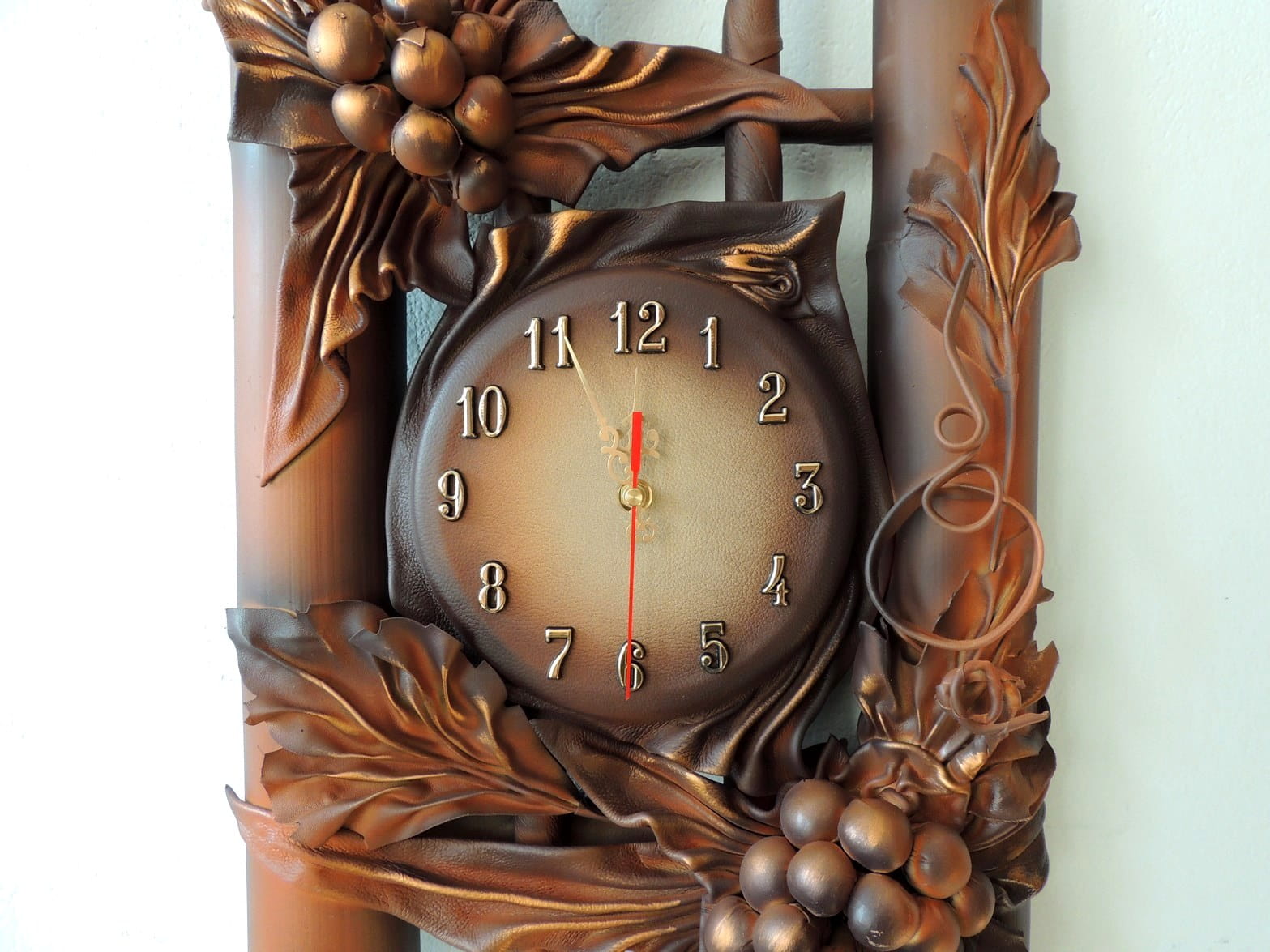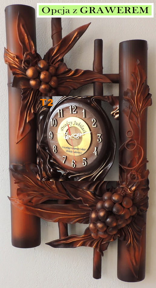 Zegar ze skóry i bambusa, winogrona do salonu na prezent jubileuszowy - B3-1